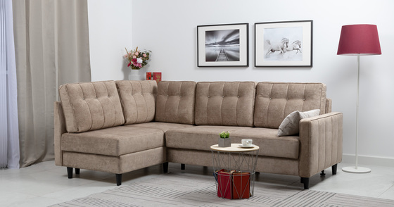 Диван-кровать угловой SMART 1 левый, рогожка Sherlock 932 (1Пф-2Т)