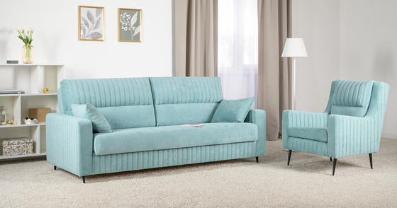 Диван-кровать прямой Оксфорд 715 композиция 3, STORM 9 мятный, модульная система