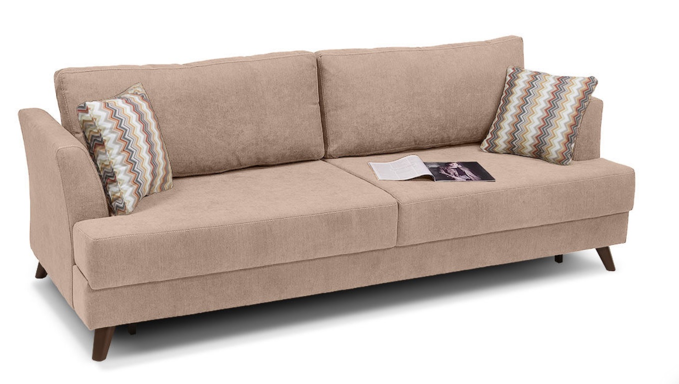 Лаконичный и элегантный диван легко впишется в любой современный интерьер. Из нескольких вариантов обивки вы легко сможете подобрать цветовое решение, подходящее именно вам. Высокие подлокотники и декоративные подушки обеспечивают комфортную посадку.