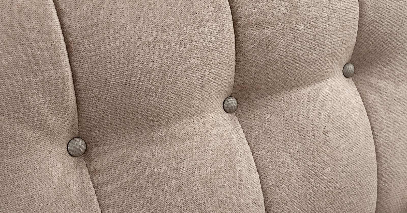 Подушки имеют трапециевидную форму, с утолщением к низу для комфорта посадки. Кант по всему периметру подушек, декоративные утяжки металлическими пуговицами, вертикальная стежка.