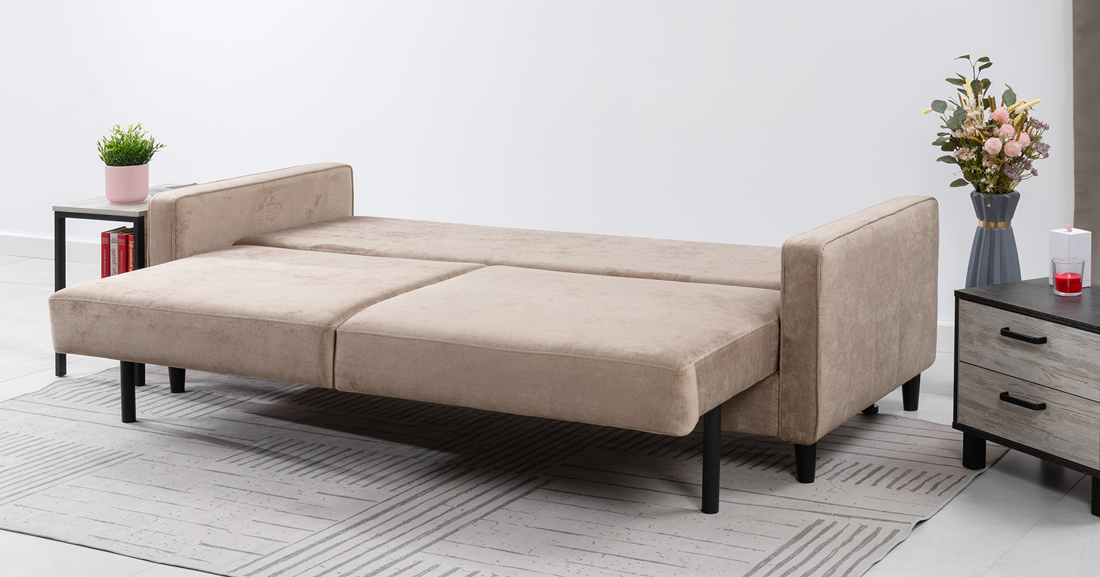 Диван-кровать прямой Арно ТД 565 велюр Лаки 04 песочный, Vertical 910 молочно-серый