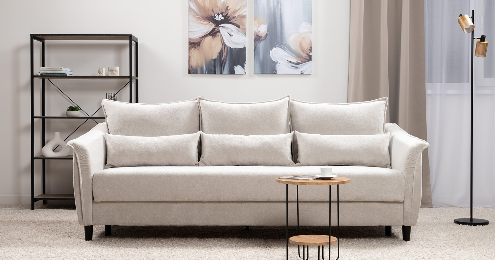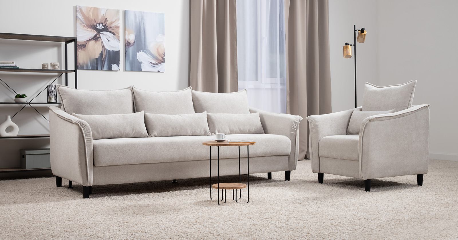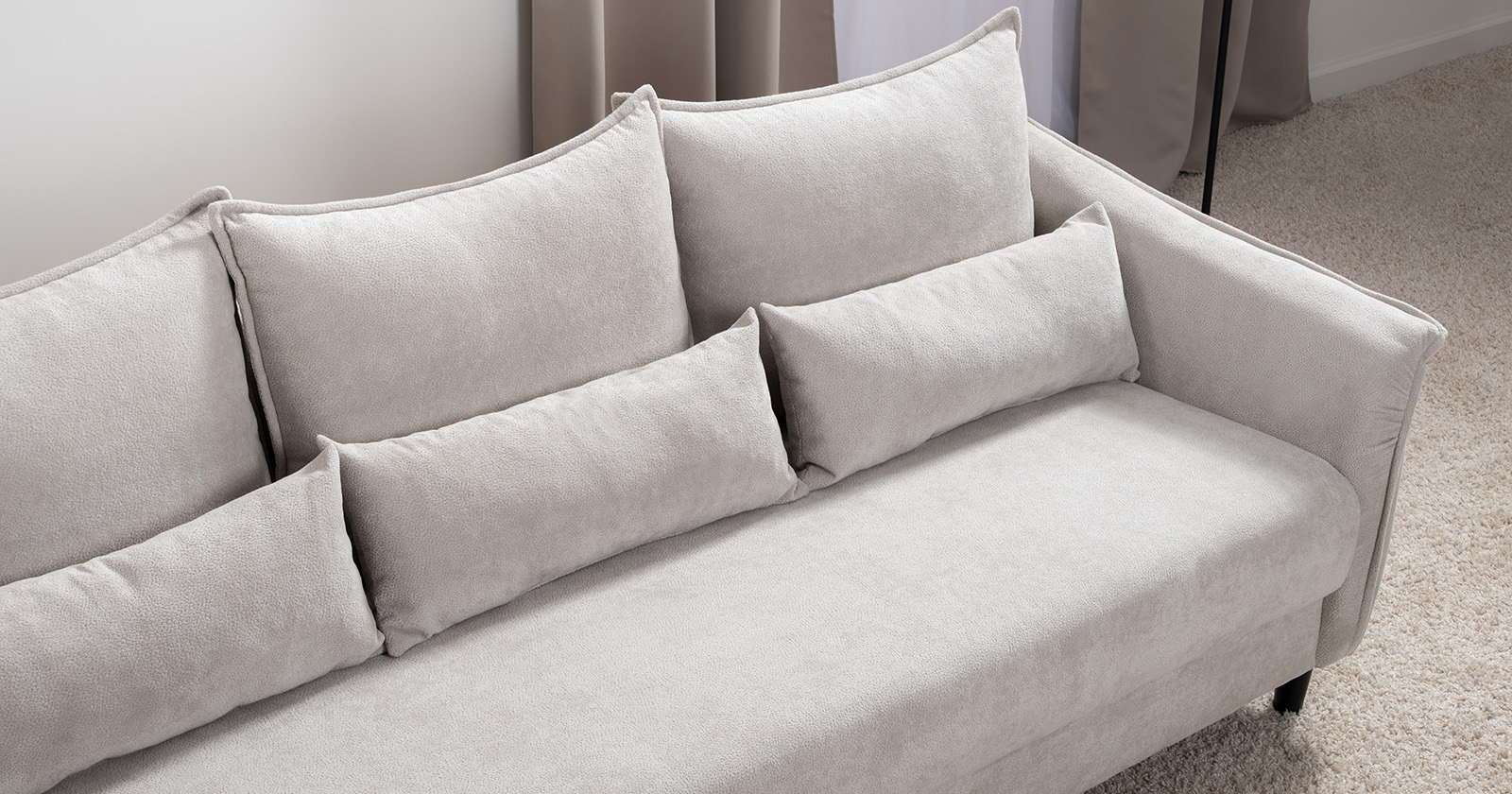 Изогнутые подлокотники в форме лепестков придают коллекции изысканный и элегантный вид, а дополнительные декоративные подушки обеспечат поддержку тела и помогут уютно устроиться на диване. В наполнении дивана используется высокоэластичная пена, которая адаптируется к форме вашего тела и гаранитует максимальный комфорт во время отдыха.