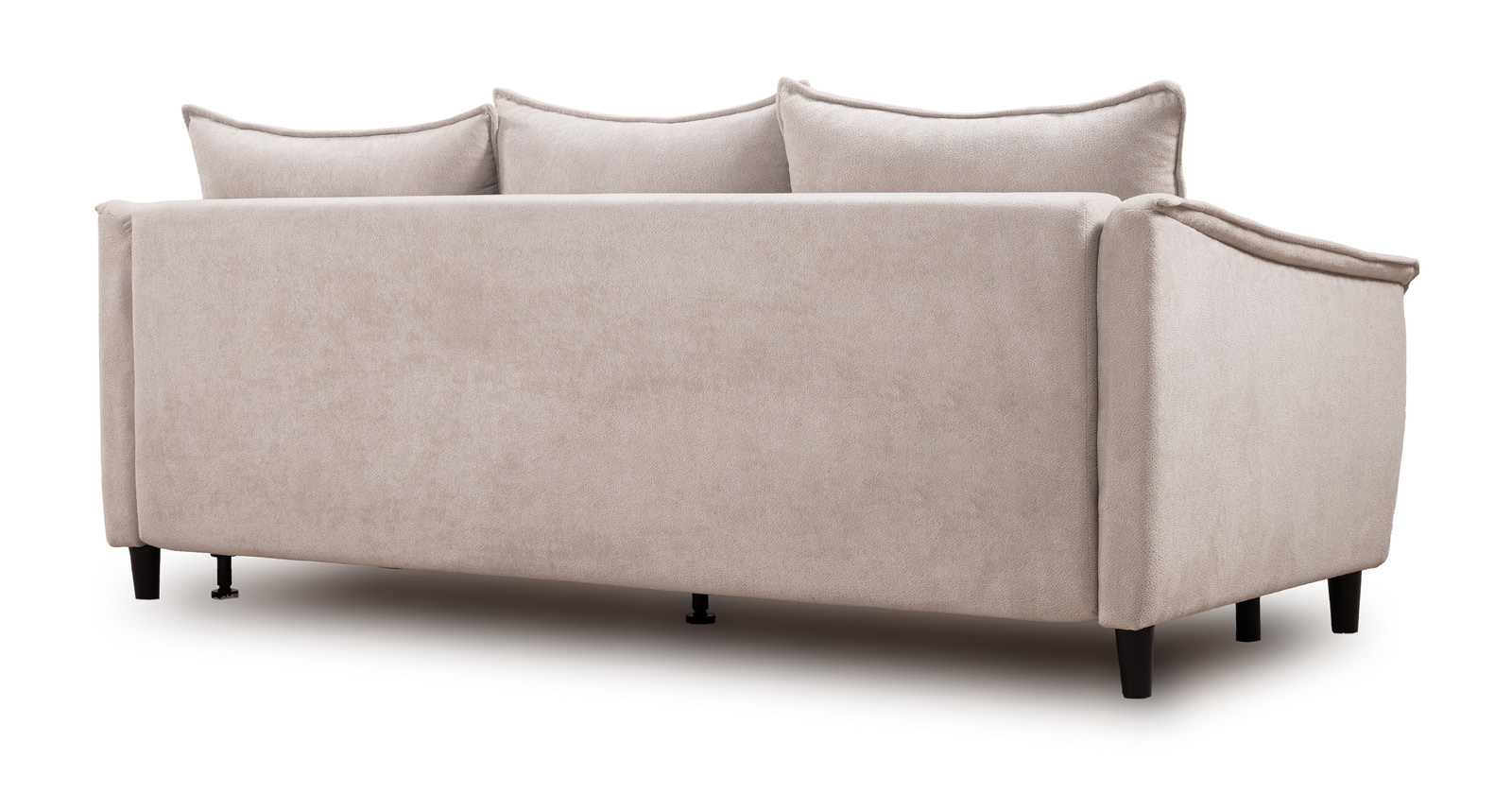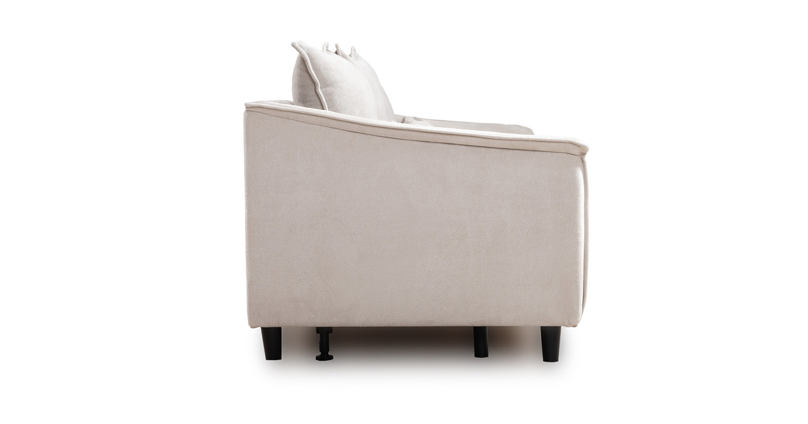 Спинка с тремя приспинными подушками. Две подушки трапецивидной формы, центральная квадратной формы на молнии, по трем сторонам которых проложена отделочная строчка на 1,2 см. По контуру боковин проложен декоративный кант на 1,2 см из основной ткани. Кант проходит по центру передней части боковины, а по внутренней верхней части сборка.