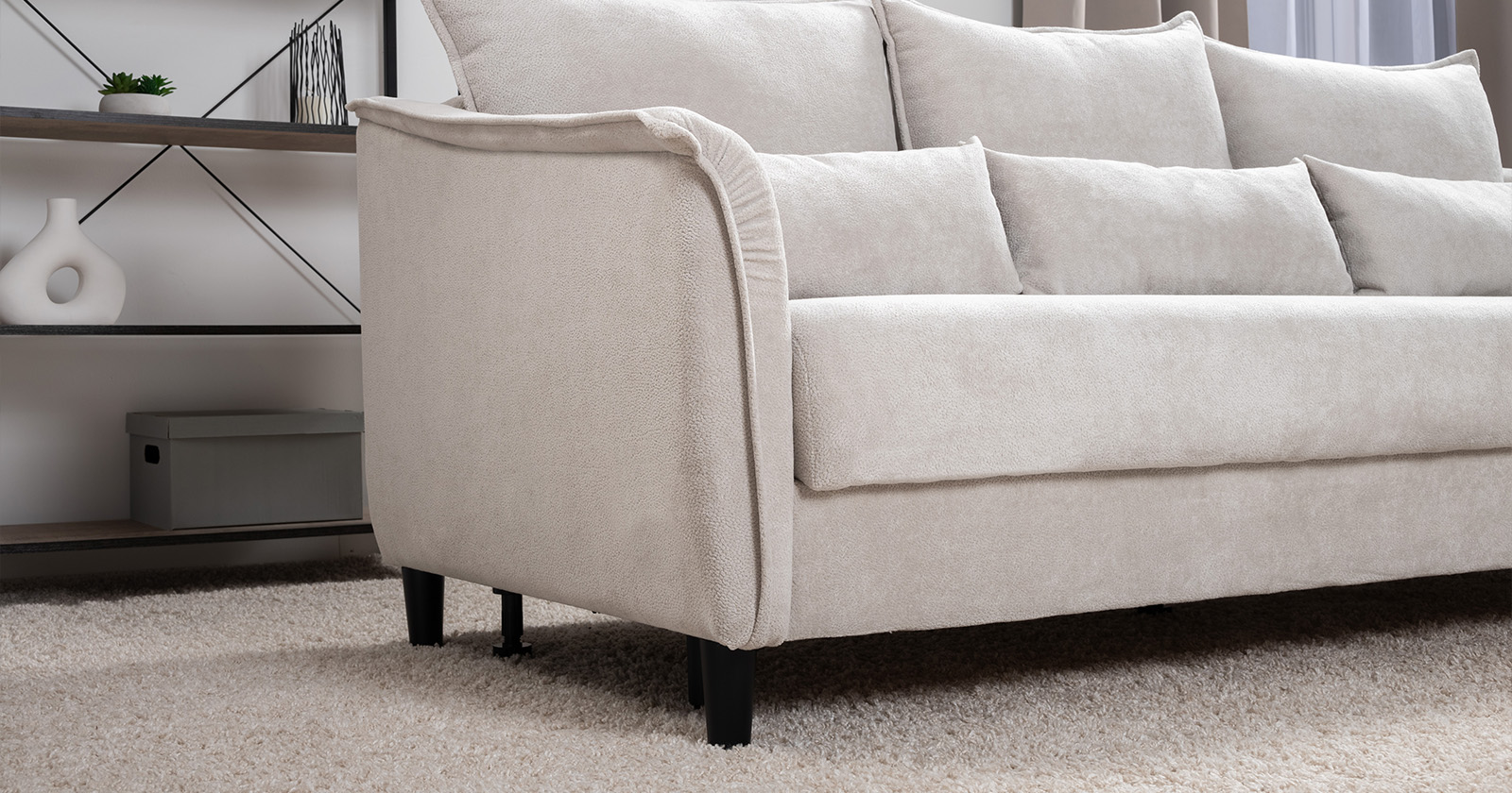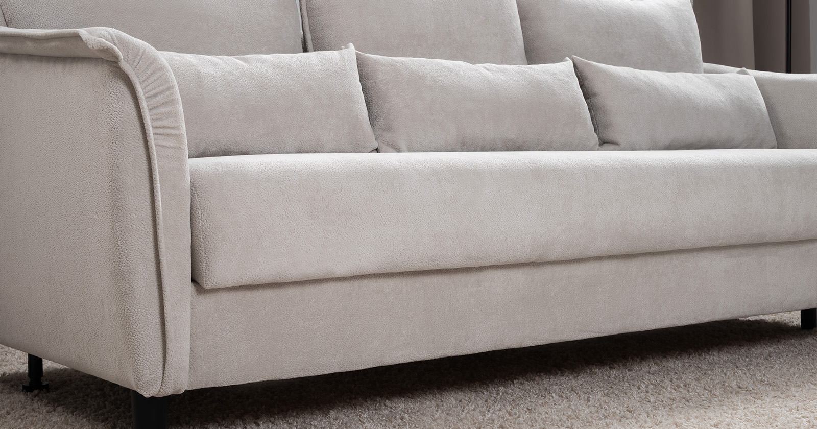 Изогнутые подлокотники в форме лепестков придают коллекции изысканный и элегантный вид, а дополнительные декоративные подушки обеспечат поддержку поясницы и помогут уютно устроиться на диване. В наполнении дивана используется высокоэластичная пена, которая адаптируется к форме вашего тела и гарантирует максимальный комфорт во время отдыха.