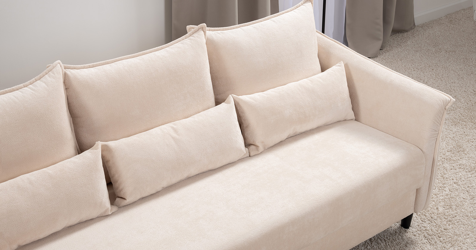 Изогнутые подлокотники в форме лепестков придают коллекции изысканный и элегантный вид, а дополнительные декоративные подушки обеспечат поддержку тела и помогут уютно устроиться на диване. В наполнении дивана используется высокоэластичная пена, которая адаптируется к форме вашего тела и гаранитует максимальный комфорт во время отдыха.
