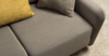 В комплекте 5 двусторонних приспинных подушки и 2 декоративные думки. Задняя спинка в ткани основы. Декоративные отделочные строчки по боковинам и сиденью