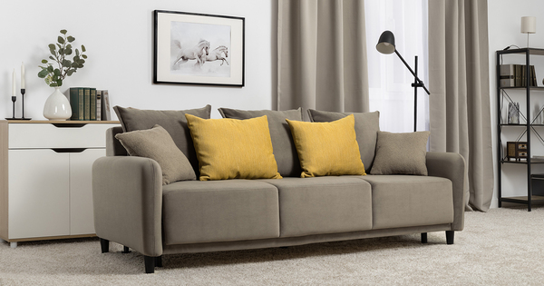 Диван-кровать прямой Дакота ТД 583 велюр Vendetta 10 серо-коричневый, Riga 1598 z1 col 34 горчичный, Romeo 03