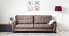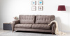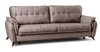 Декоративные канты на подушках дивана, подлокотниках и сиденье. Стежка на передней части сиденья и внешней части подлокотника. Защипы на верхней части подушки. Втяжки с пуговицами на приспинных подушках.