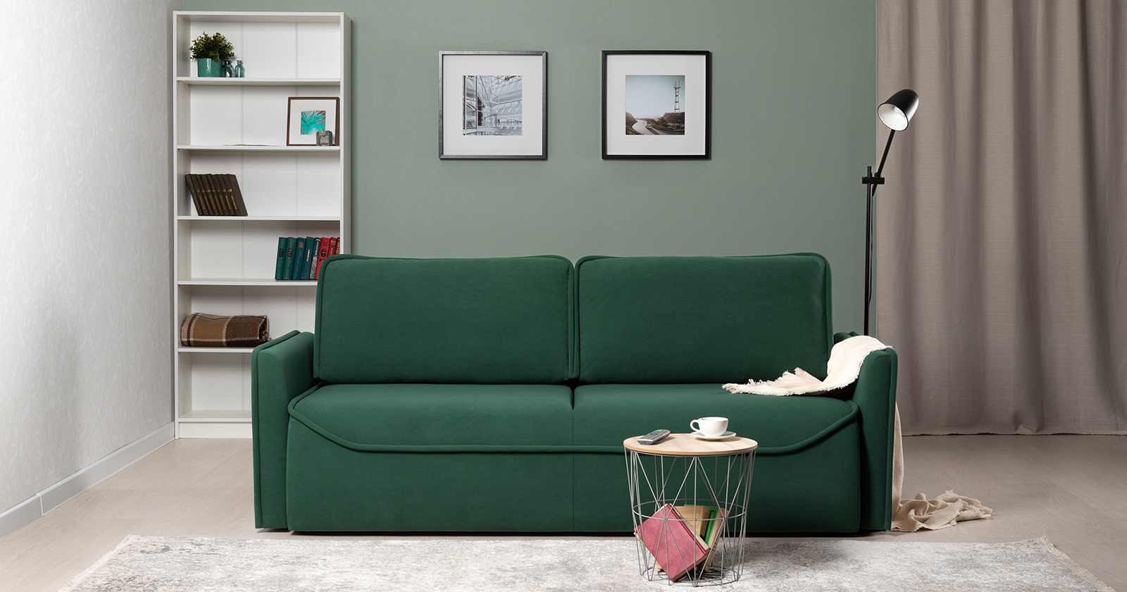 Диван-кровать прямой Элиот ТД 444 велюр хвойный зеленый