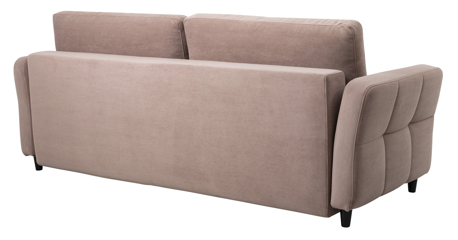 Ровная отстрочка по всему периметру сидения и стежка? создающая эффект пышности выделенных форм. Подлокотники прямые с изгибом в наружные стороны, с выраженной стежкой по лицевой стороне. Стежка на посадочной части дивана.