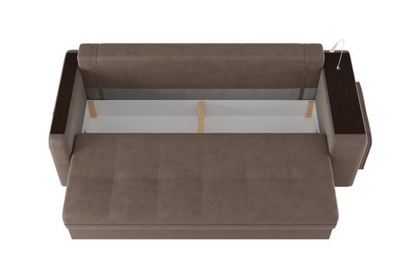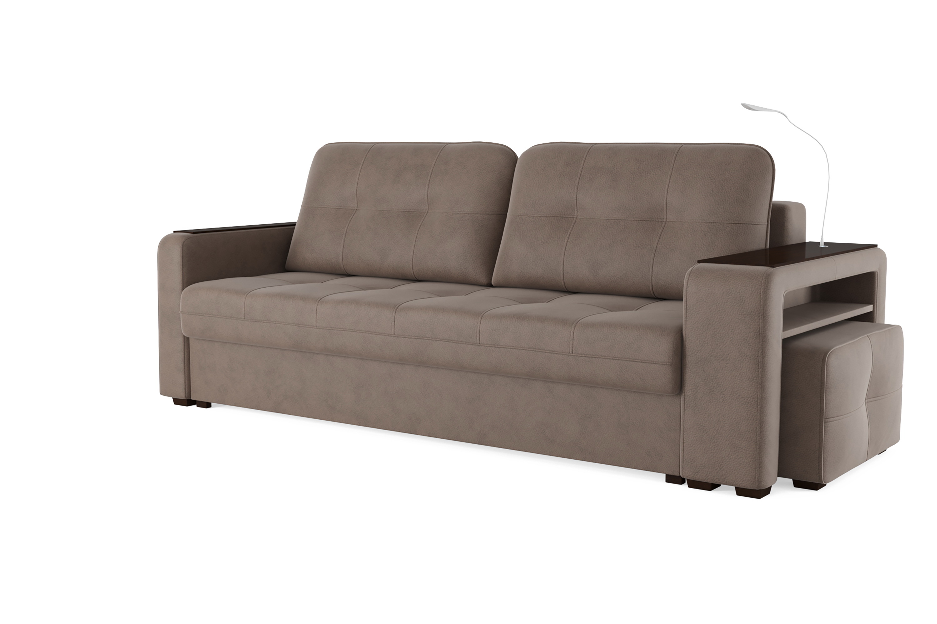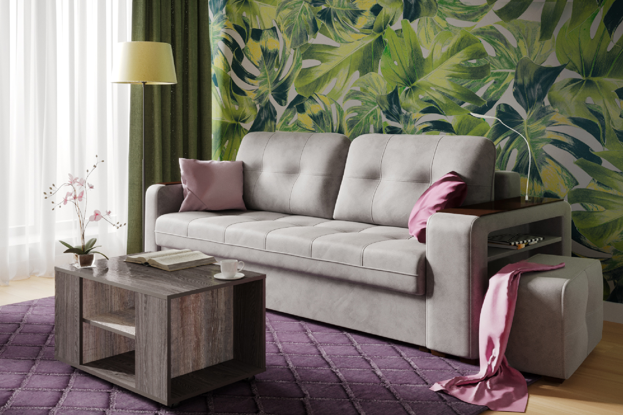 Диван «SMART 4» — это не просто мягкая мебель, а один из ключевых элементов интерьера с обширным функционалом, где эстетика тесно соседствует с комфортом и эргономичностью.  Одна боковина оснащена карманом для хранения мелочей и гаджетов, другая боковина совмещает одновременно: рабочую поверхность, за счет широкой накладки, двойной  usb - порт  и портативную лампу точечного света, которая входит в комплект. Добавить контрастных деталей в интерьер поможет пуф, интегрированный в подлокотник. Этот вариант для современных людей, которые ценят комфорт и удобство отдыха. Мягкое сиденье с легкостью трансформируется в просторное спальное место, на котором смогут утроиться ваши гости. Стильный и уютный, он станет отличным решением, если вы ищите не только красоту, но и комфорт.
