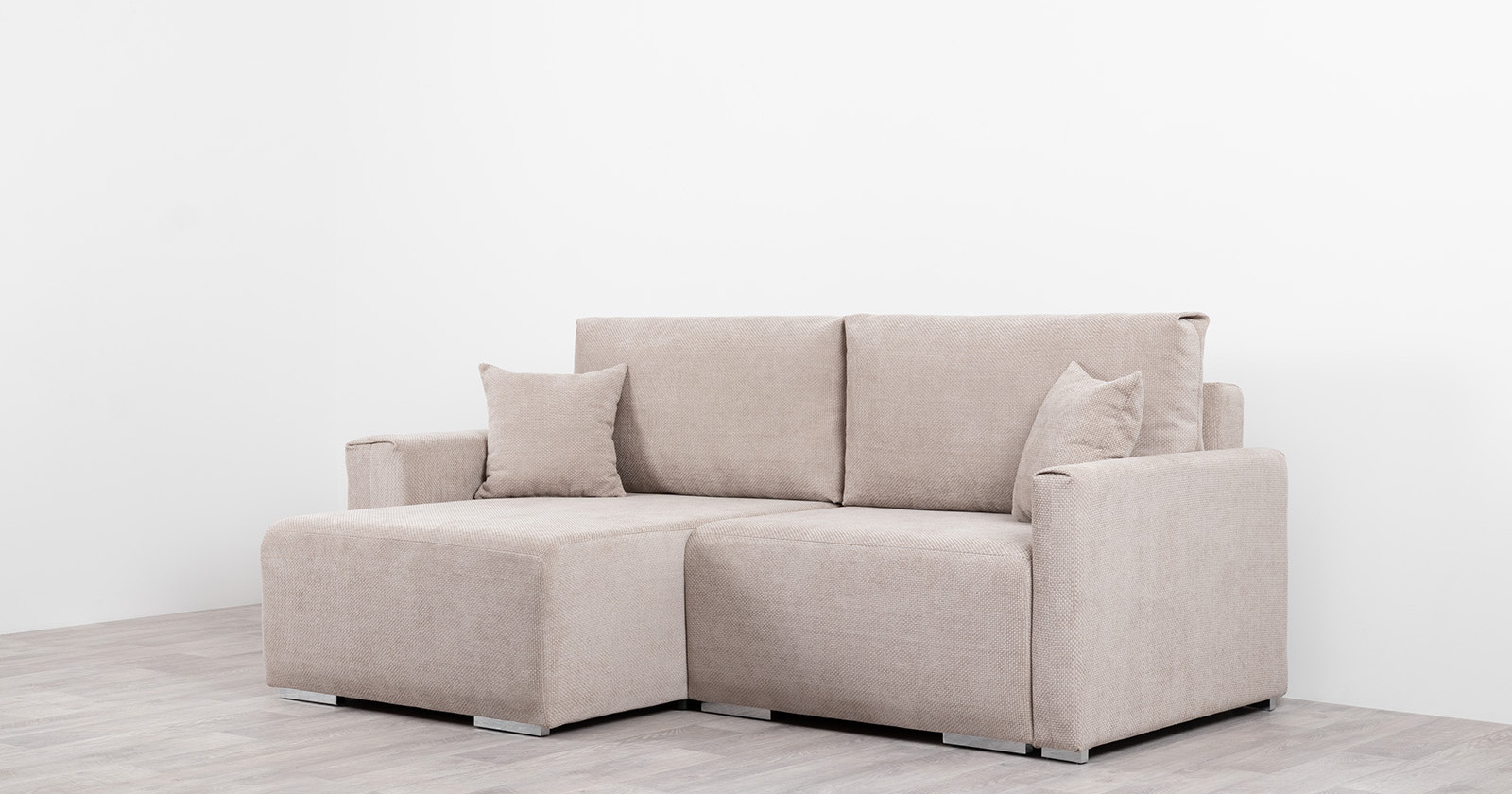 Диван-кровать угловой Оксфорд 710 композиция 2, шенилл Muza 04 светло-бежевый, модульная система, сборка на любую сторону