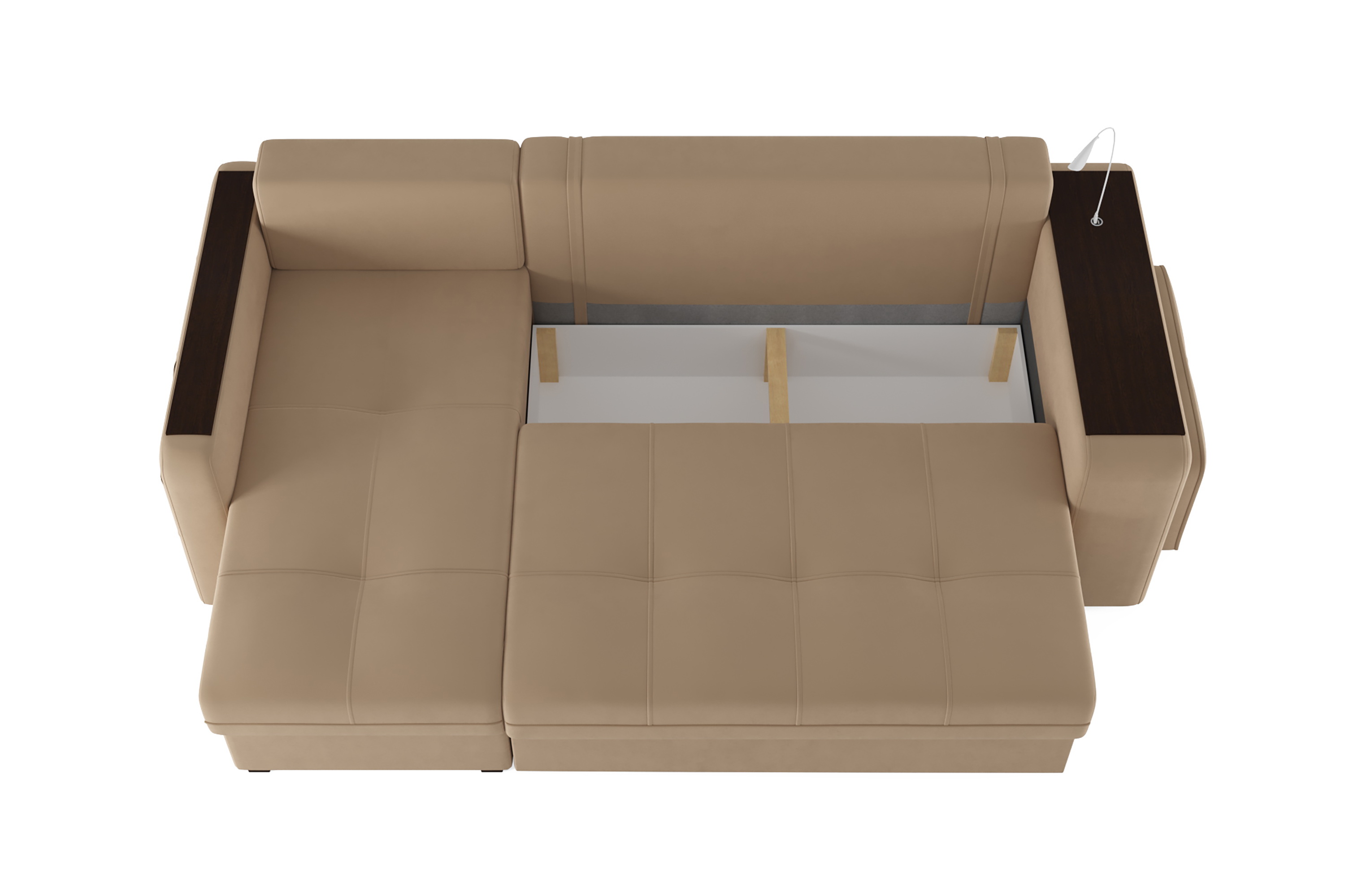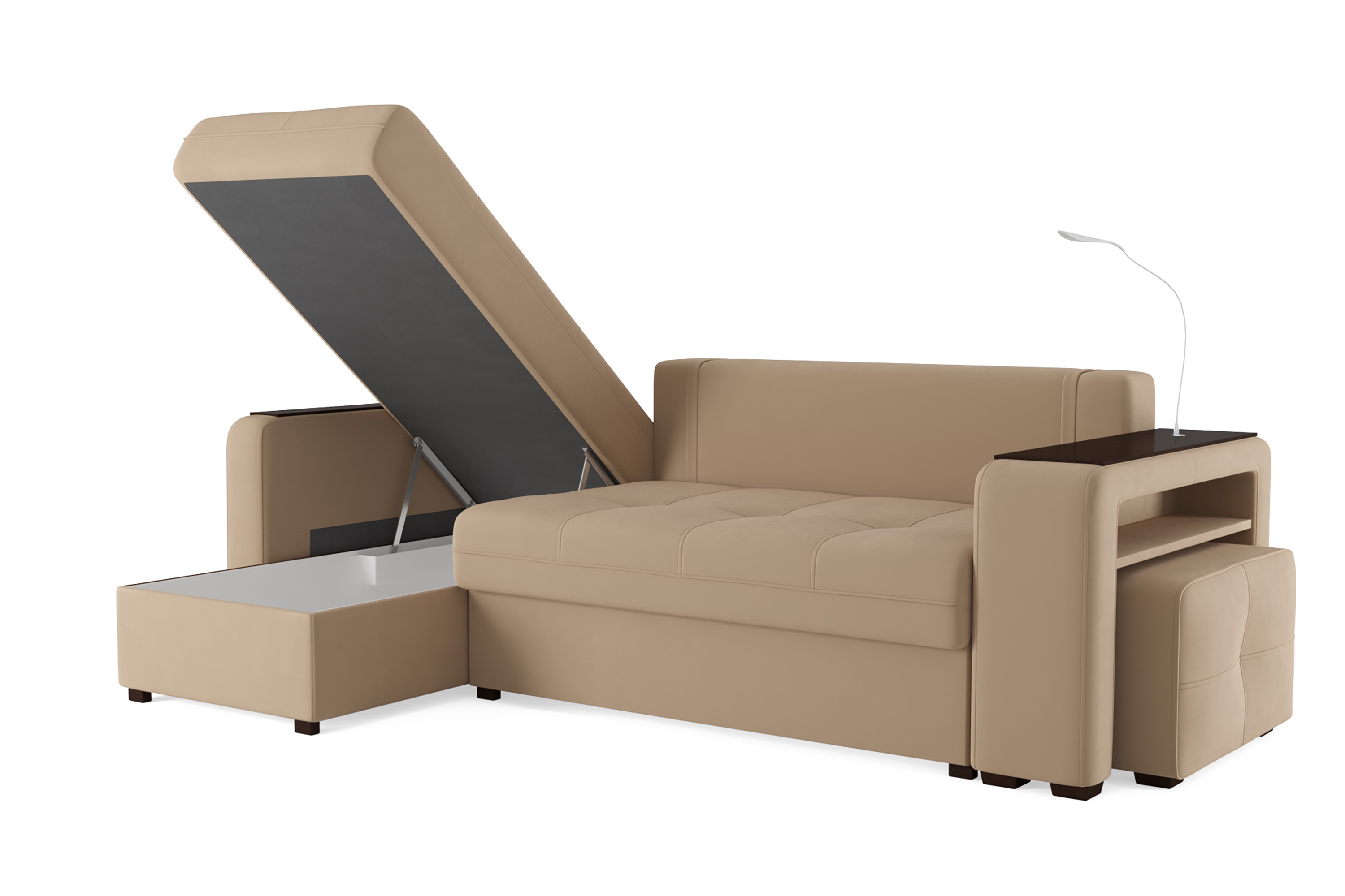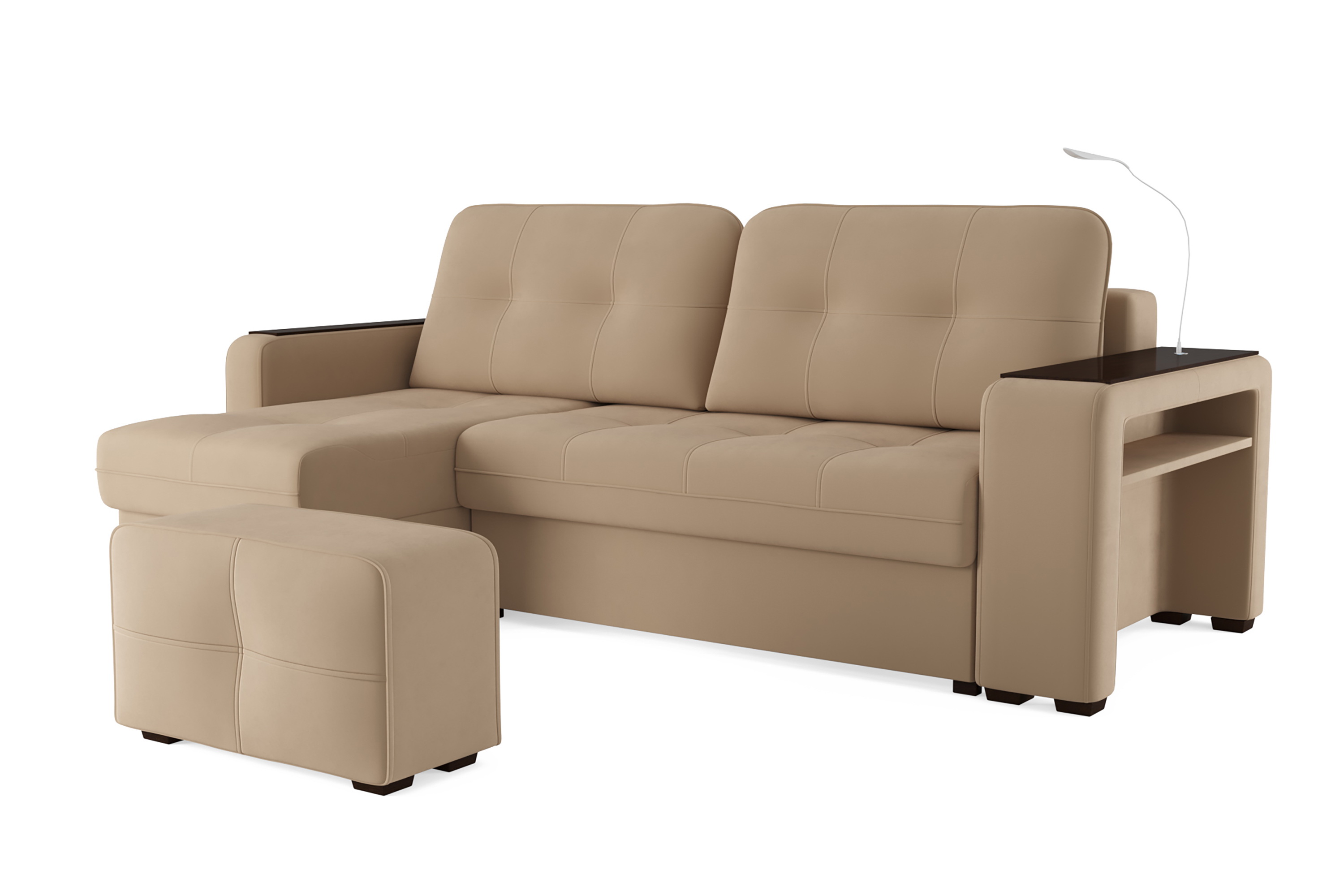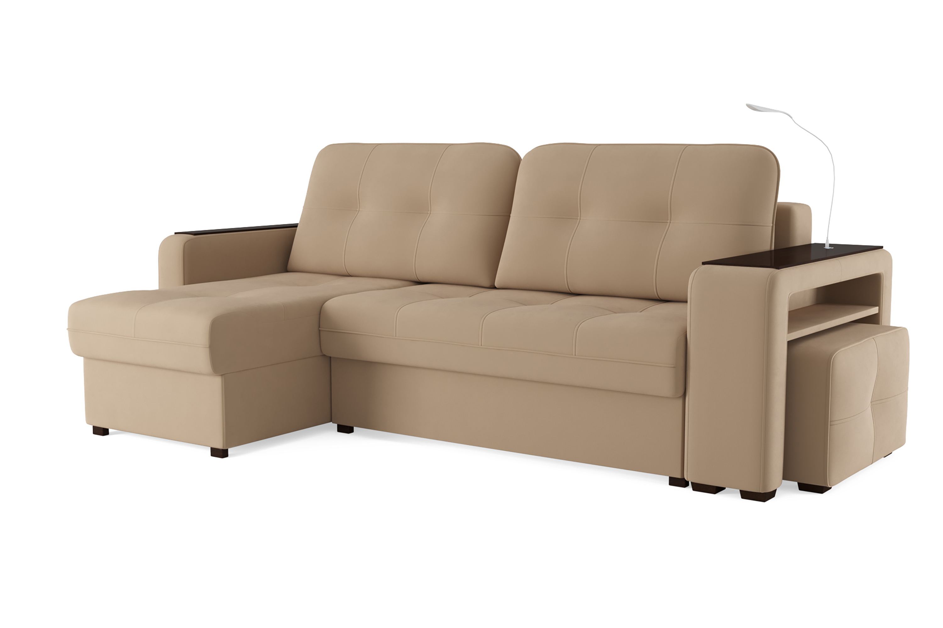 Диван-кровать угловой SMART 4 левый, велюр Velutto 05 бежевый (Б3-1Пф-2Т-Б4)