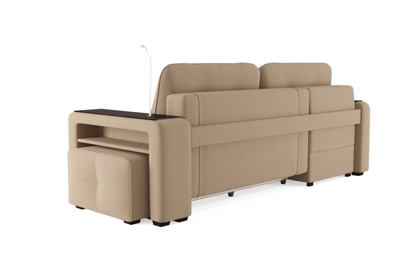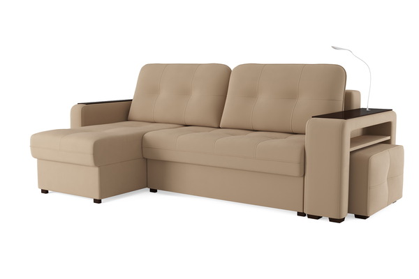 Баланс между эстетикой и функциональностью — основное требование к современной мебели. Мягкая мебель должна быть не просто красивой, но прежде всего удобной и функциональной. Особенно если речь идет о маленьких квартирах, где гостиная может быть одновременно и спальней, и кабинетом. С этой задачей прекрасно справится диван «SMART 4». Уникальный  дизайн делает модель по-настоящему универсальной. Одна боковина оснащена карманом для хранения мелочей и гаджетов, другая боковина совмещает одновременно: рабочую поверхность, за счет широкой накладки, двойной  usb - порт  и портативную лампу точечного света, которая входит в комплект. Добавить контрастных деталей в интерьер поможет пуф, интегрированный в подлокотник. Этот вариант для современных людей, которые ценят комфорт и удобство отдыха.