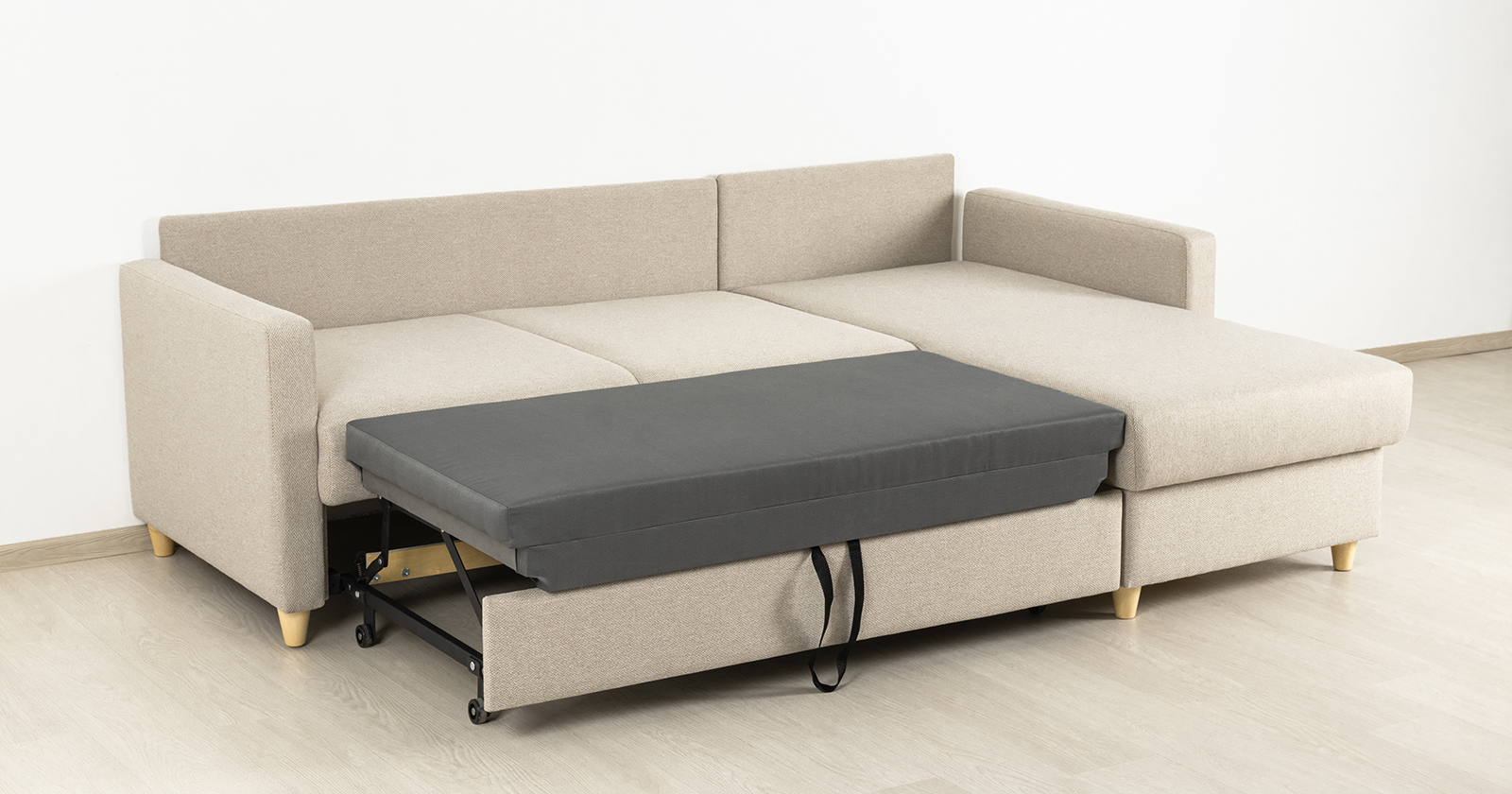 Диван-кровать угловой SMART 1 левый, велюр Velutto 05 бежевый (1Пф-2Т)