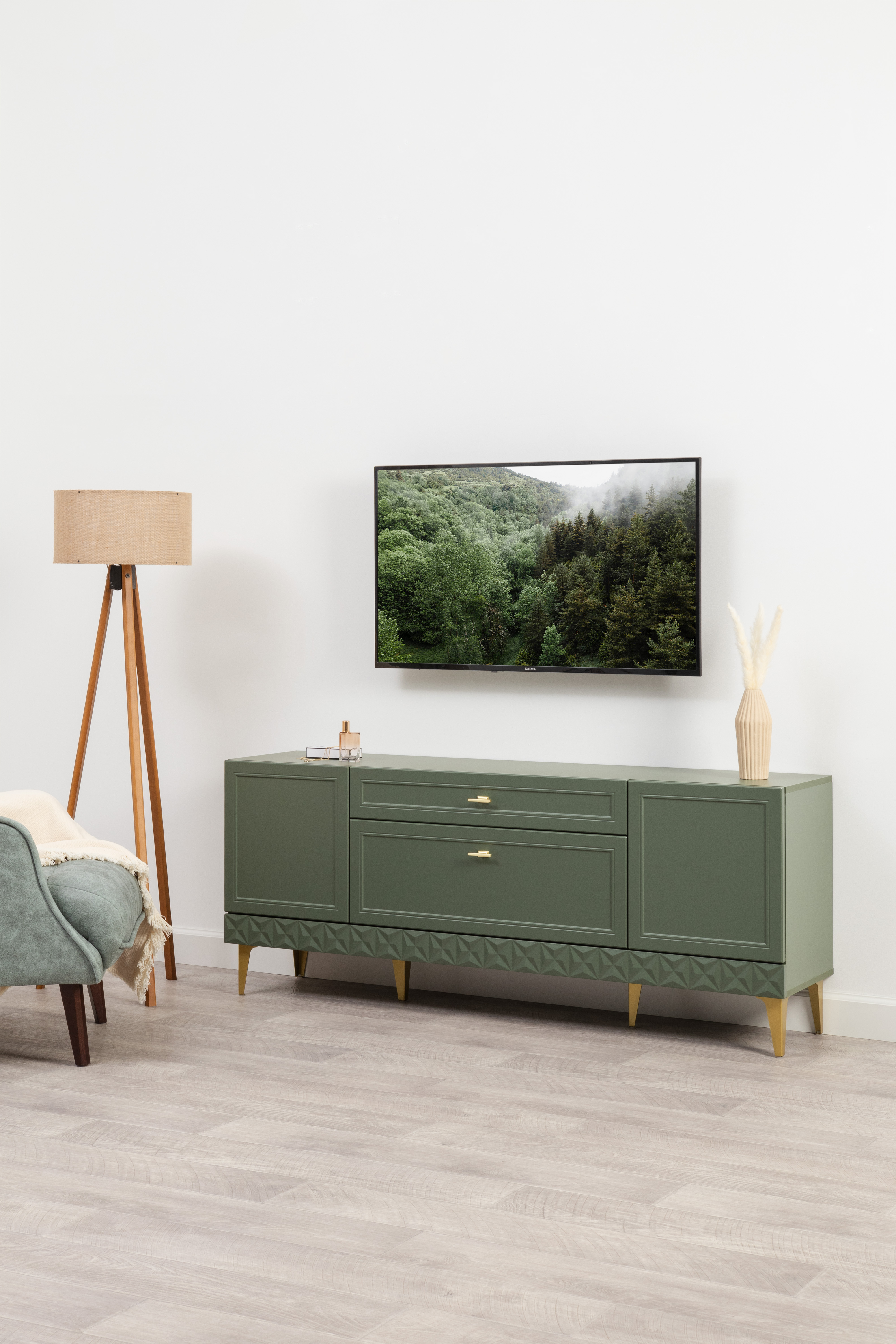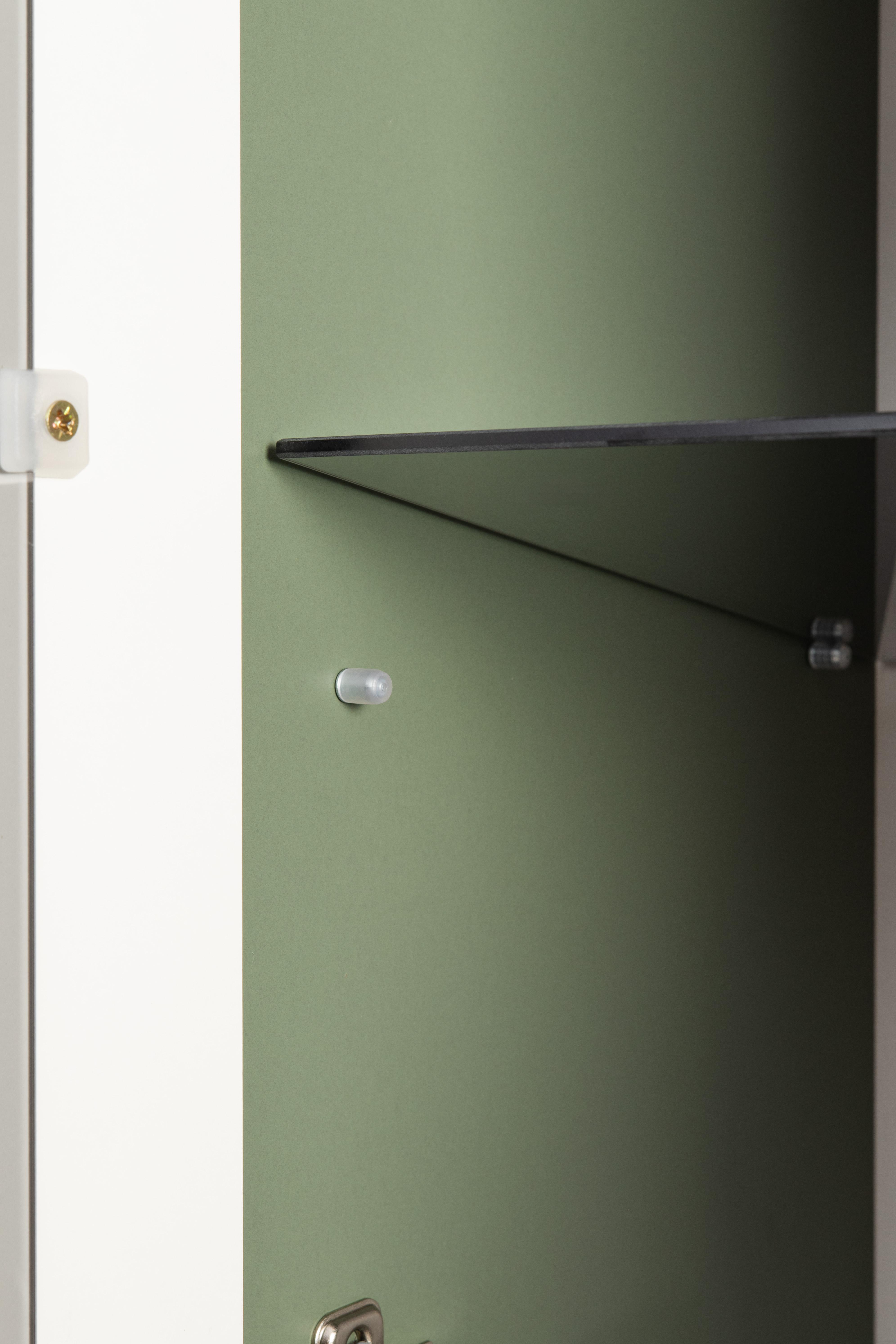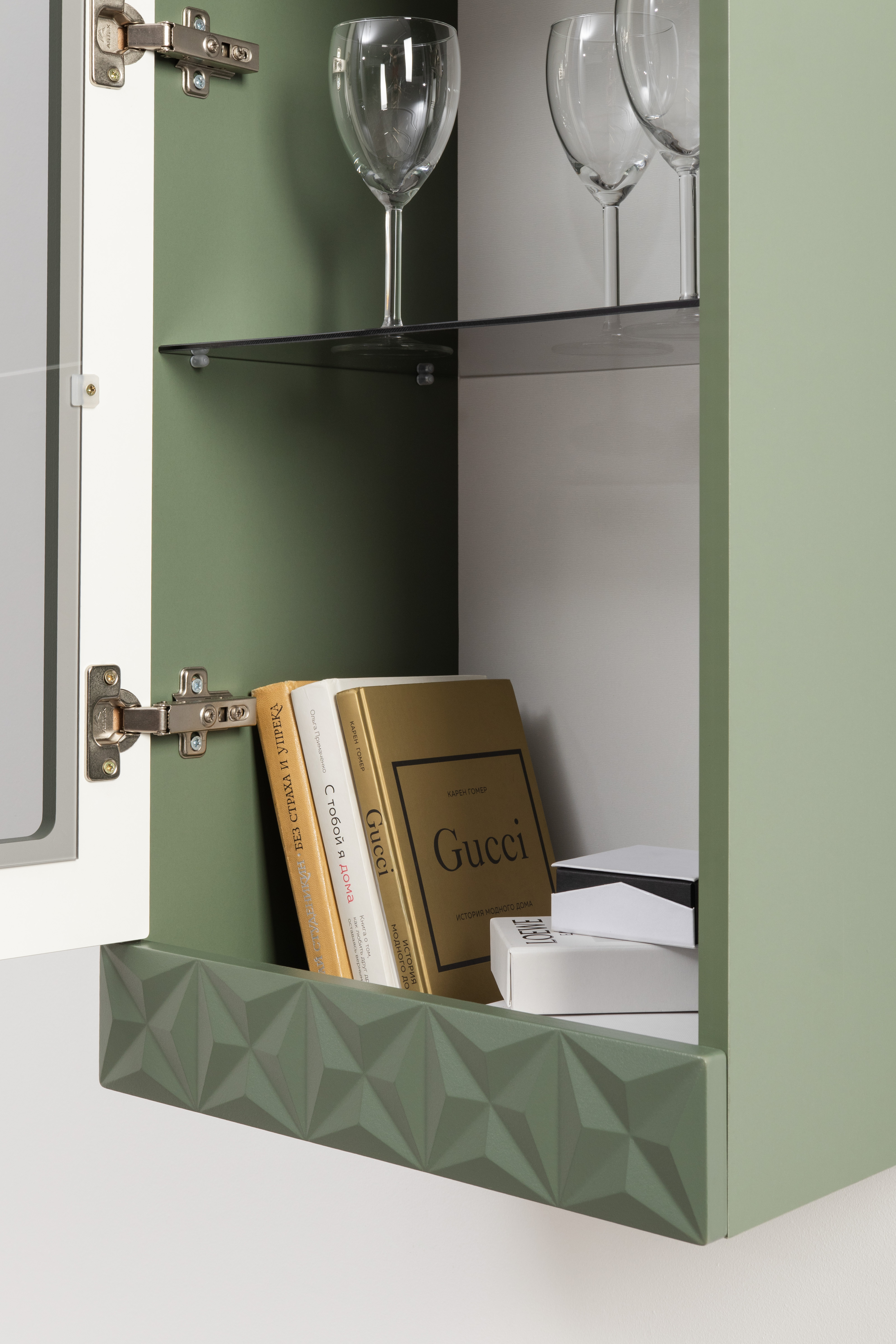 Гостиная Марион композиция 2 дымчатый зеленый K521, олива шагрень AG 1050 ПВХ, белый PE шагрень (собирается на любую сторону)