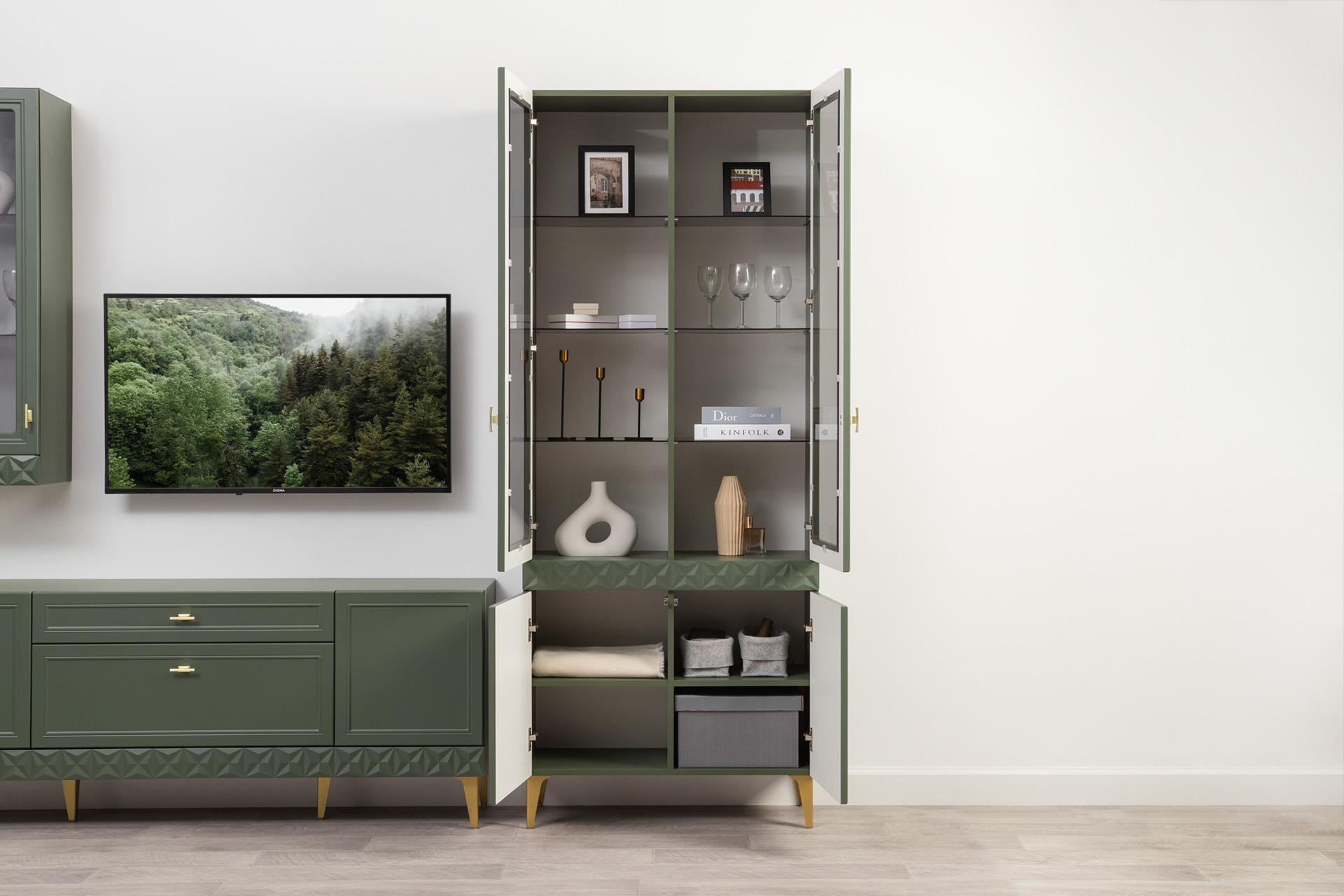 В коллекции представлены три типа витрин с тонированным закалённым стеклом, которые придают пространству лёгкость и свет. «Марион» — идеальное сочетание традиций и актуального дизайна в каждой детали.