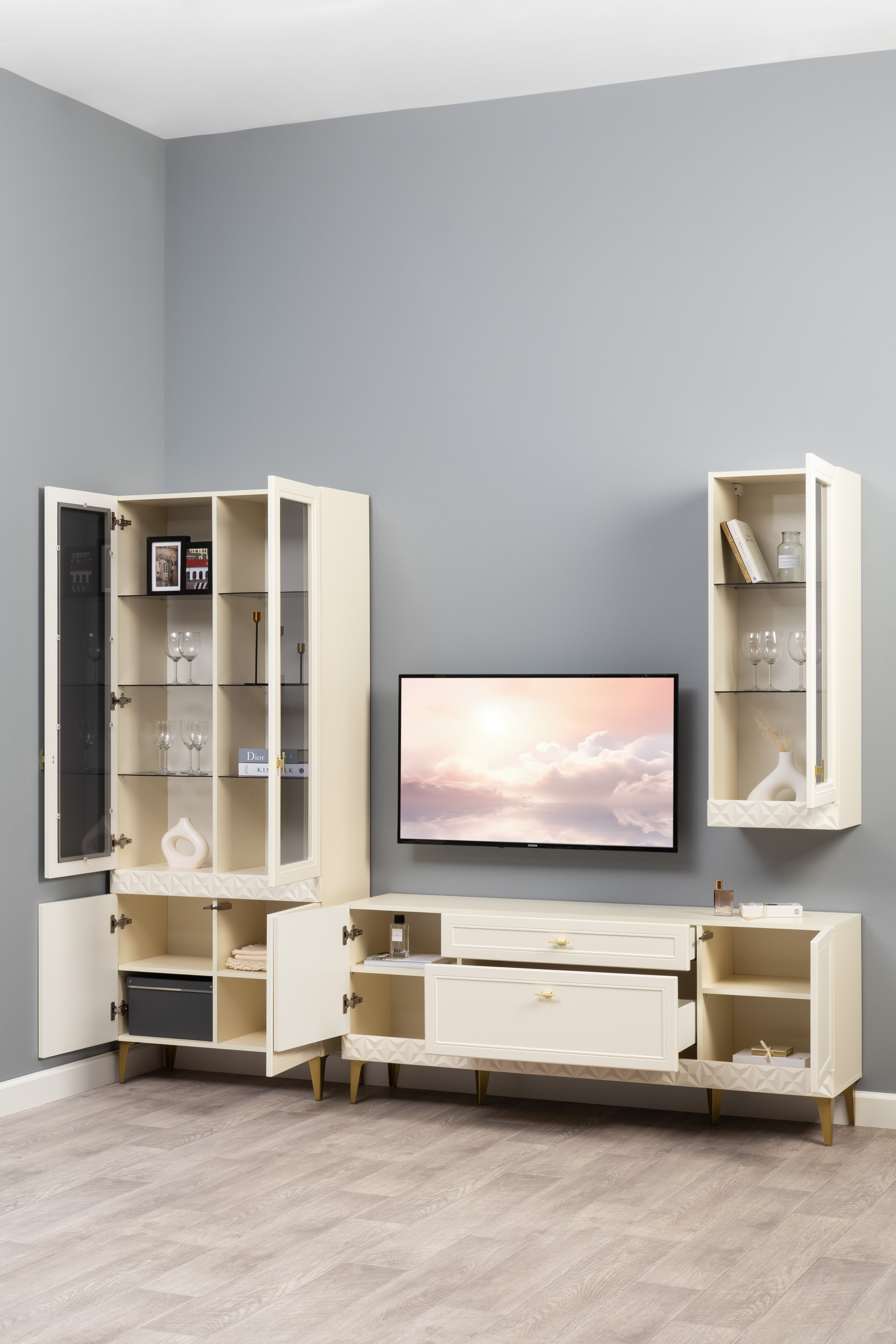 Гостиная Марион композиция 3 слоновая кость С341 PE, слоновая кость 6898 ПВХ, белый PE шагрень (собирается на любую сторону)