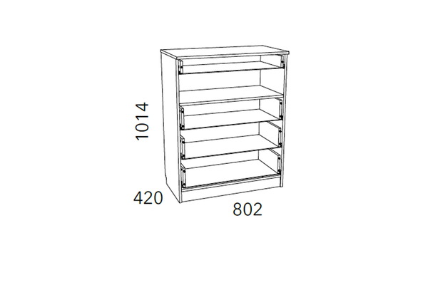 Комод «Фанк» -  идеально подходит для обустройства комнаты подростка. Светлые тона мебели, выдержанный стиль прекрасно смотрятся в любом интерьере. Четыре удобных выдвижных ящика – это огромный объем  для хранения белья, предметов одежды и аксессуаров. Выдвижные ящики оснащены шариковыми направляющими полного выдвижения, равномерно распределяют вес содержимого и обеспечивают плавный бесшумный ход ящика. Комод отлично сочетается с другими моделями коллекции «Фанк».