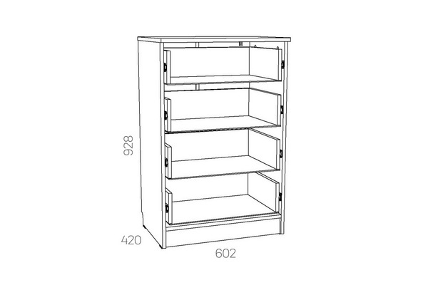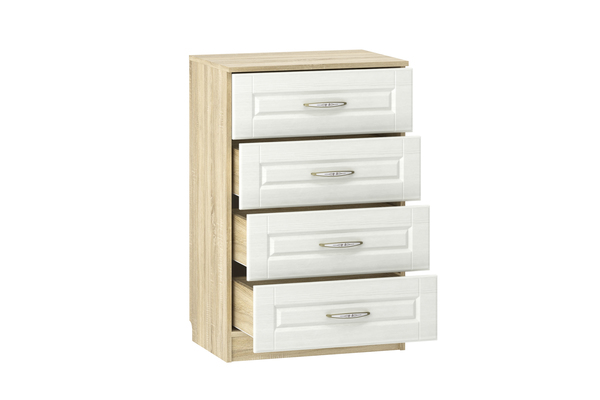 Комод Оливия НМ 040.38 X имеет компактные габариты и не займет много места в детской или спальне. Четыре вместительных ящика позволят рационально разместить внутри модуля постельные принадлежности и белье.