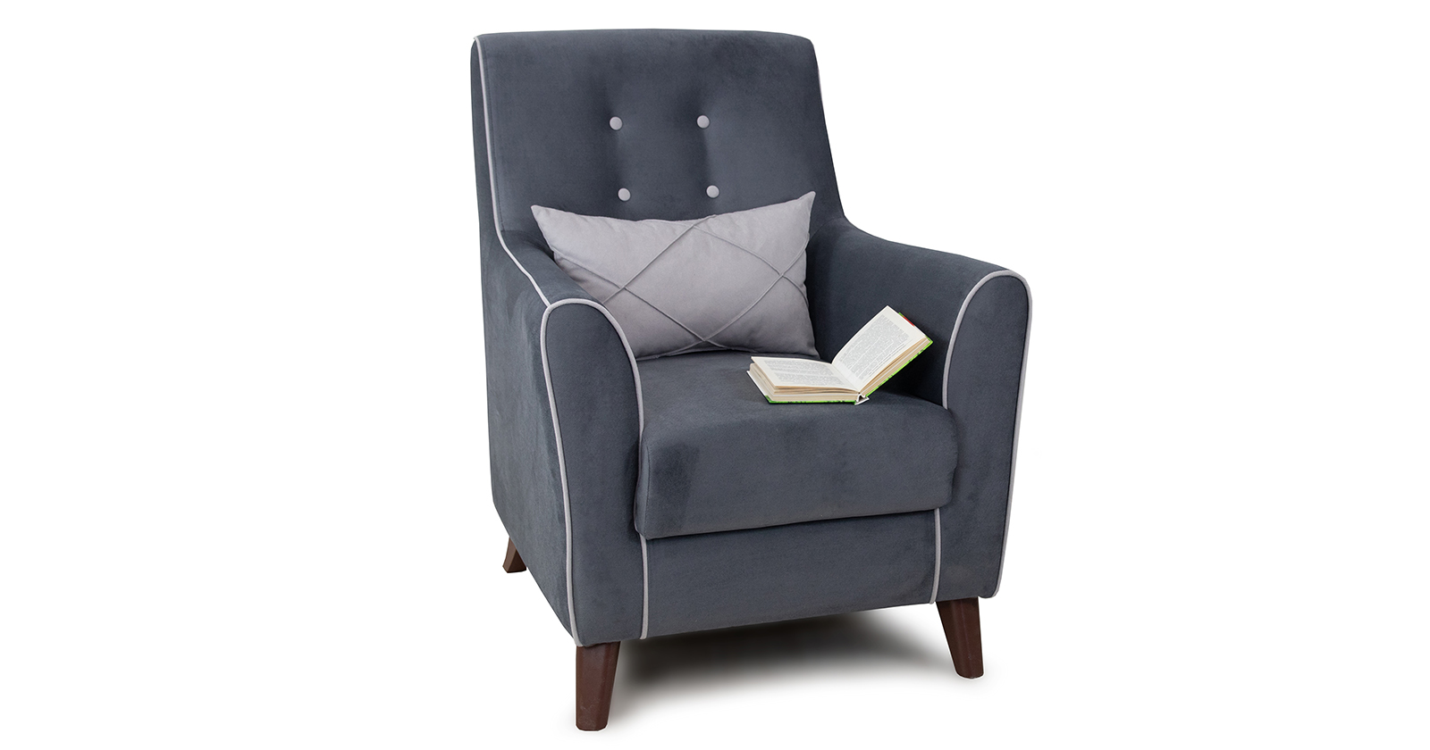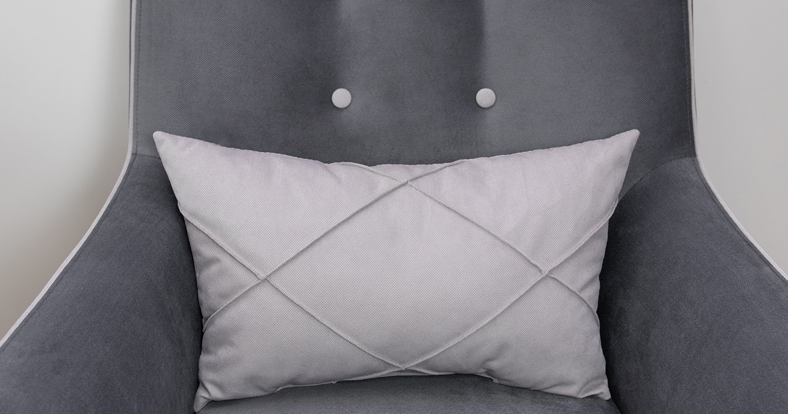 Декоративный кант на кресле, защипы на декоративной подушке, пуговицы на спинке