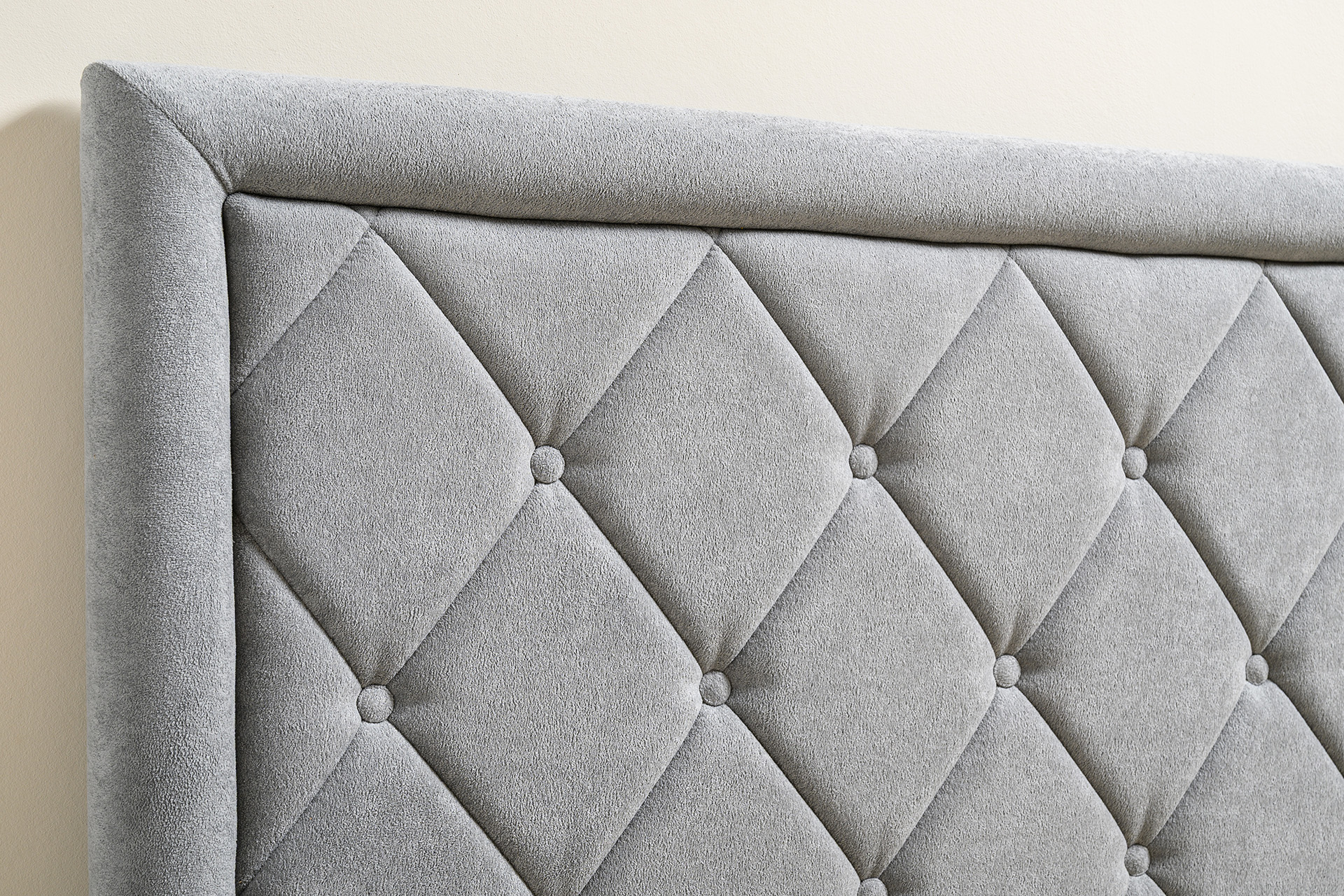 Кровать Марион — это идеальное сочетание стиля и комфорта. Элегантное изголовье оформлено стежкой в виде классической каретной стяжки, украшенной декоративными пуговицами, что придаёт изделию выразительный и утончённый вид. По всему периметру кровати проходит аккуратный валик, подчеркивающий геометрию и завершённость формы.