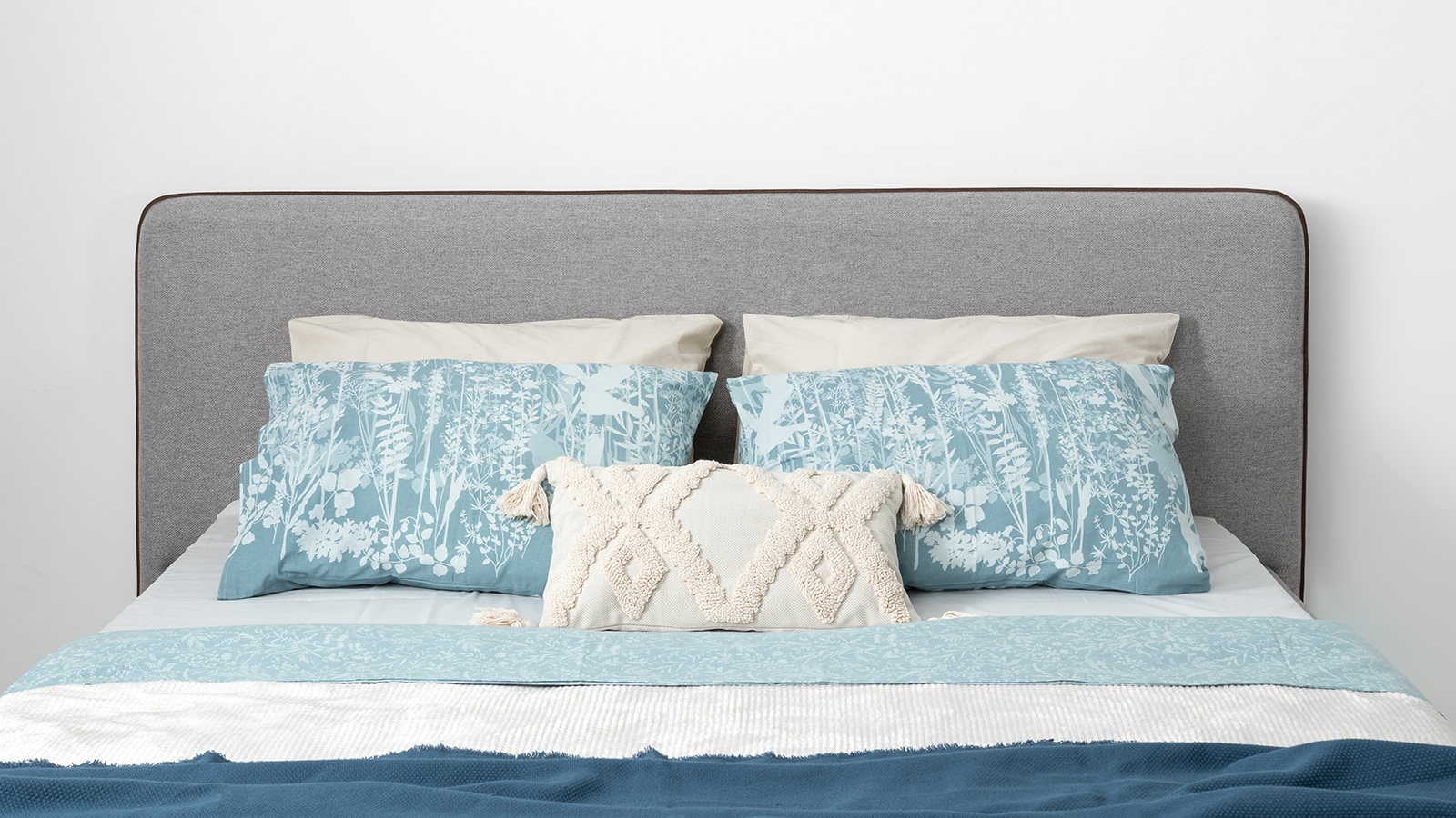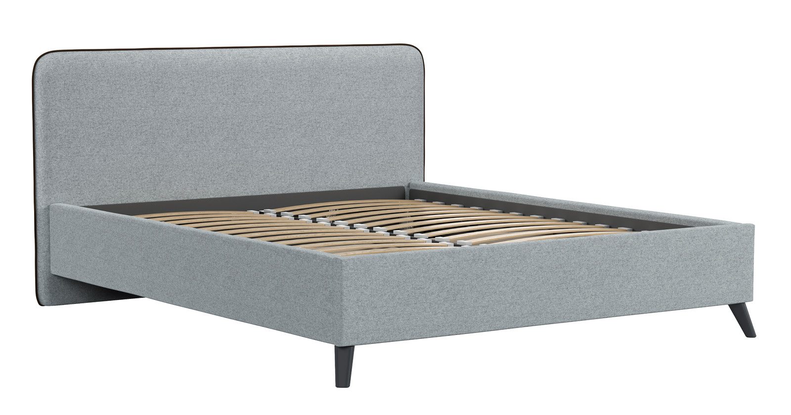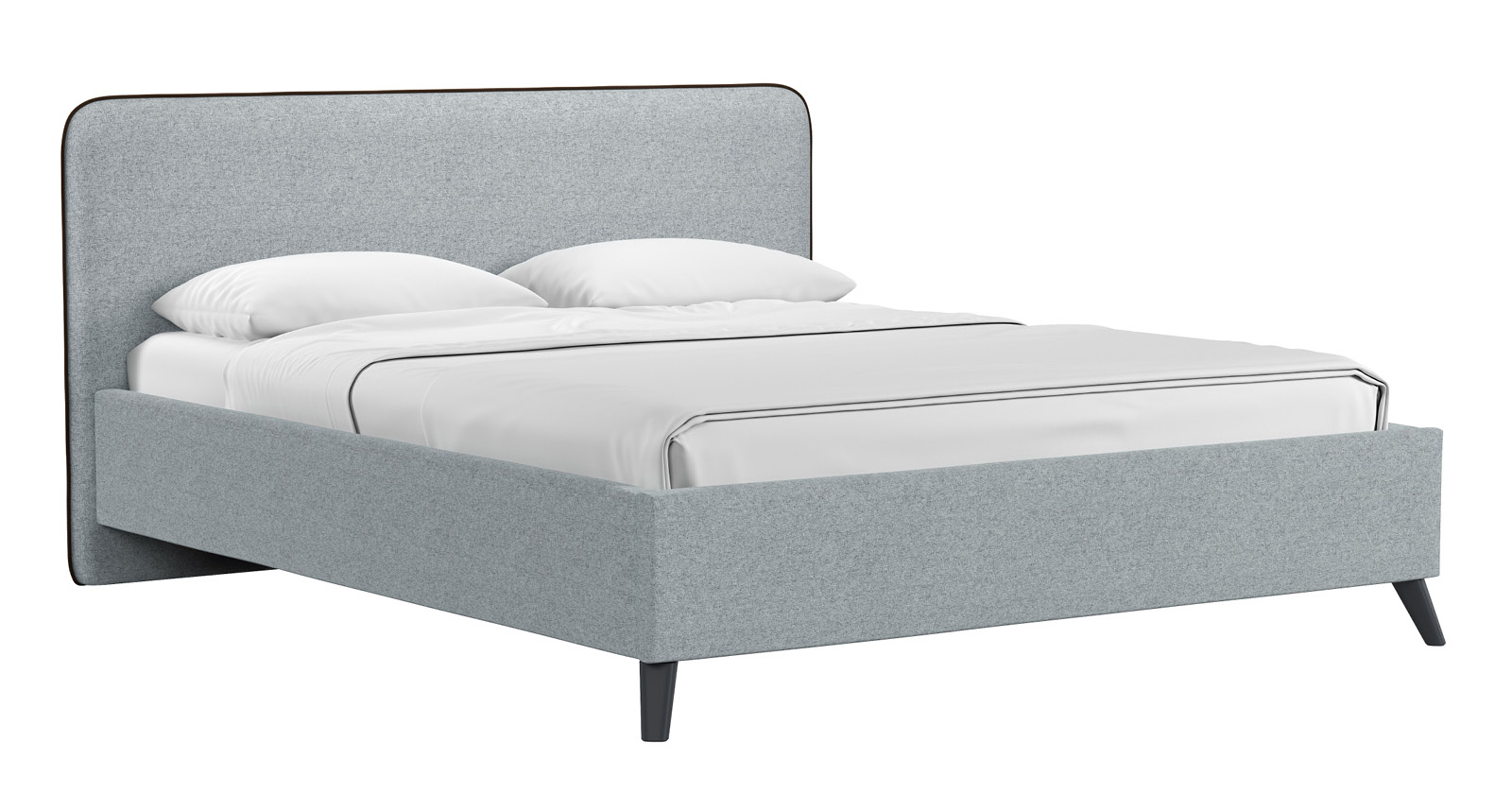 Cкругленный торец изголовья оформлен контрастным кантом.