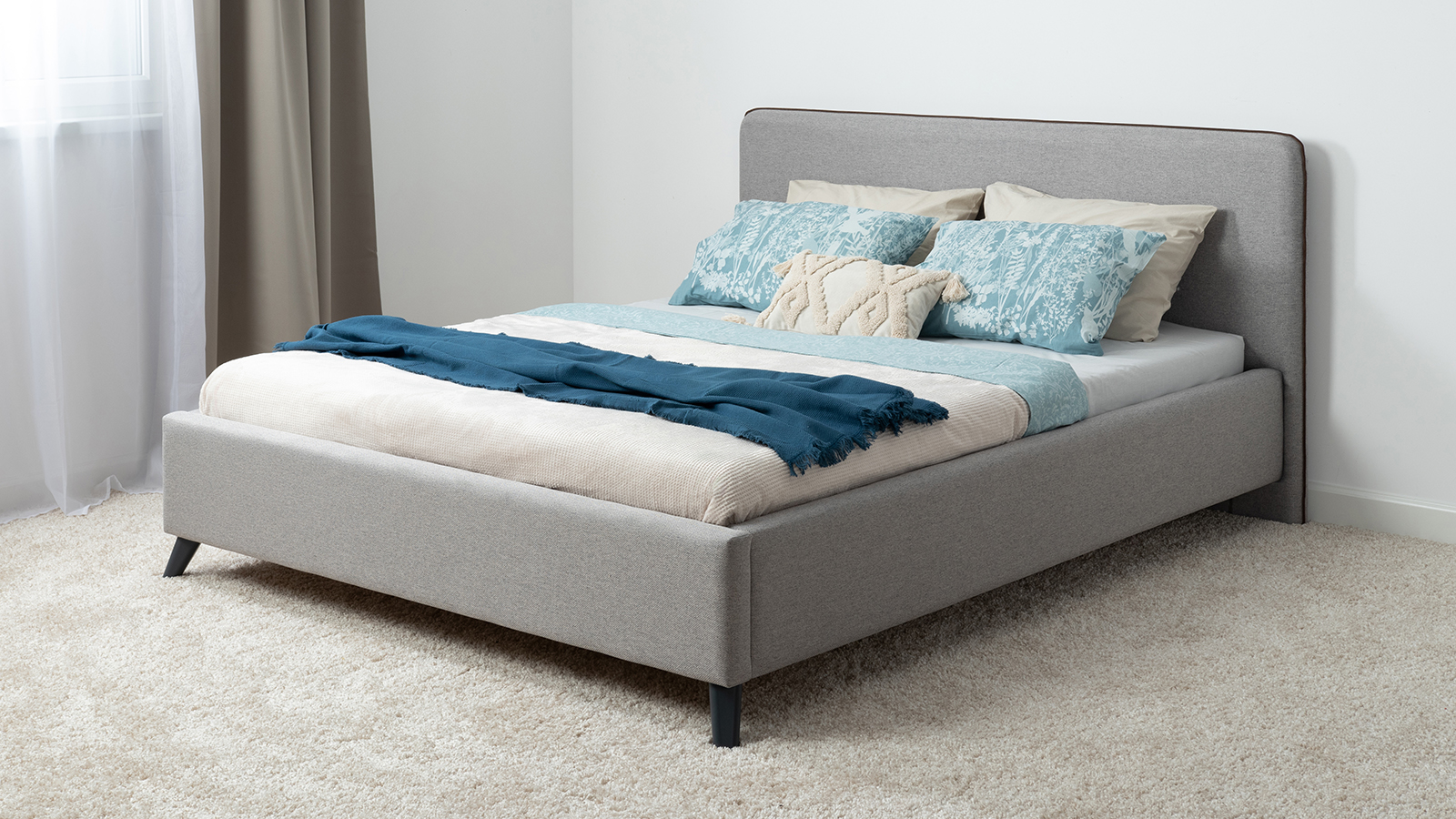 Лаконичный дизайн, гладкая и приятная на ощупь рогожка, широкий выбор пастельных оттенков, высокие опоры — модная кровать МИА порадует сторонников скандинавского стиля.