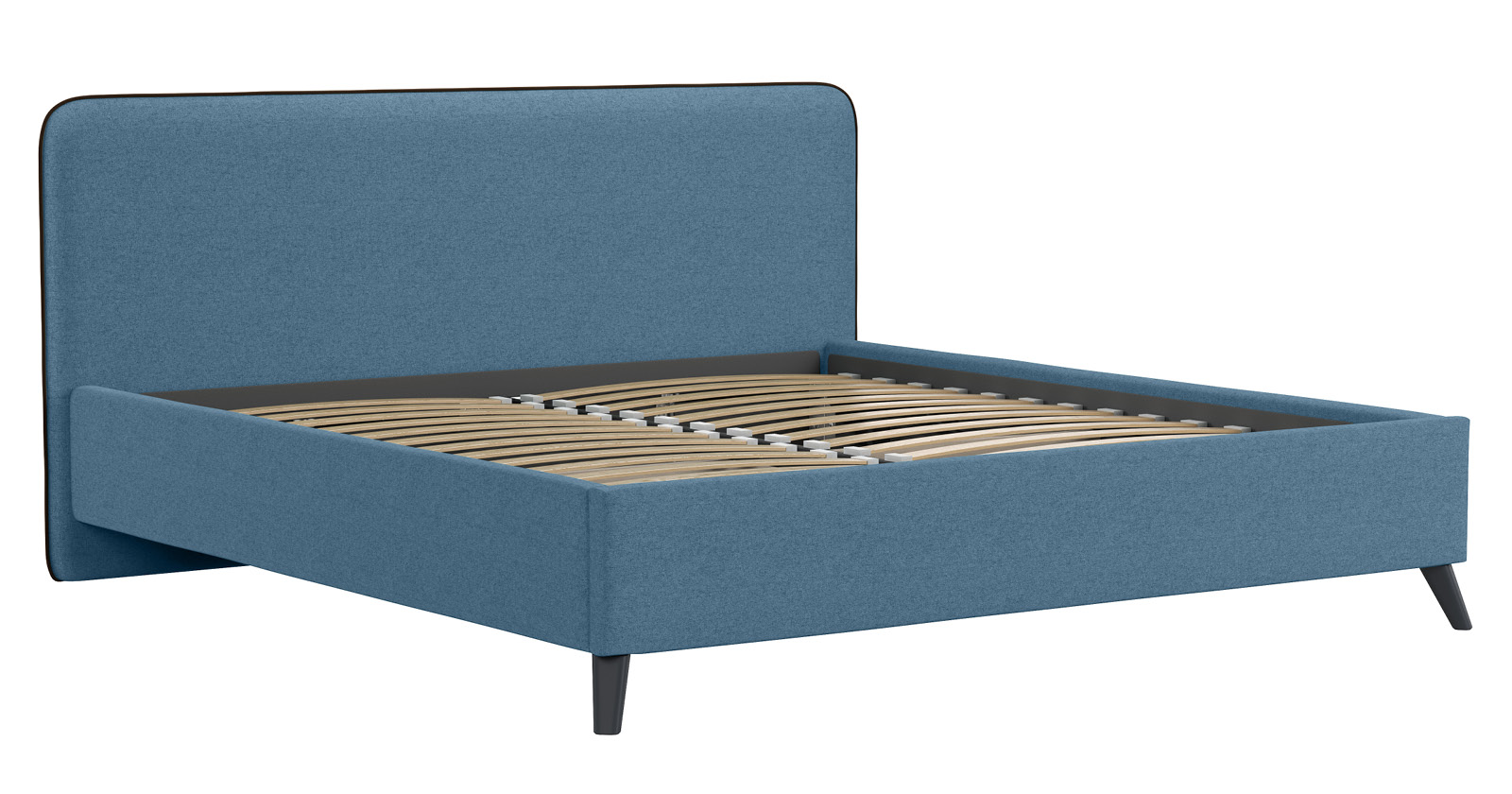 Cкругленный торец изголовья оформлен контрастным кантом.