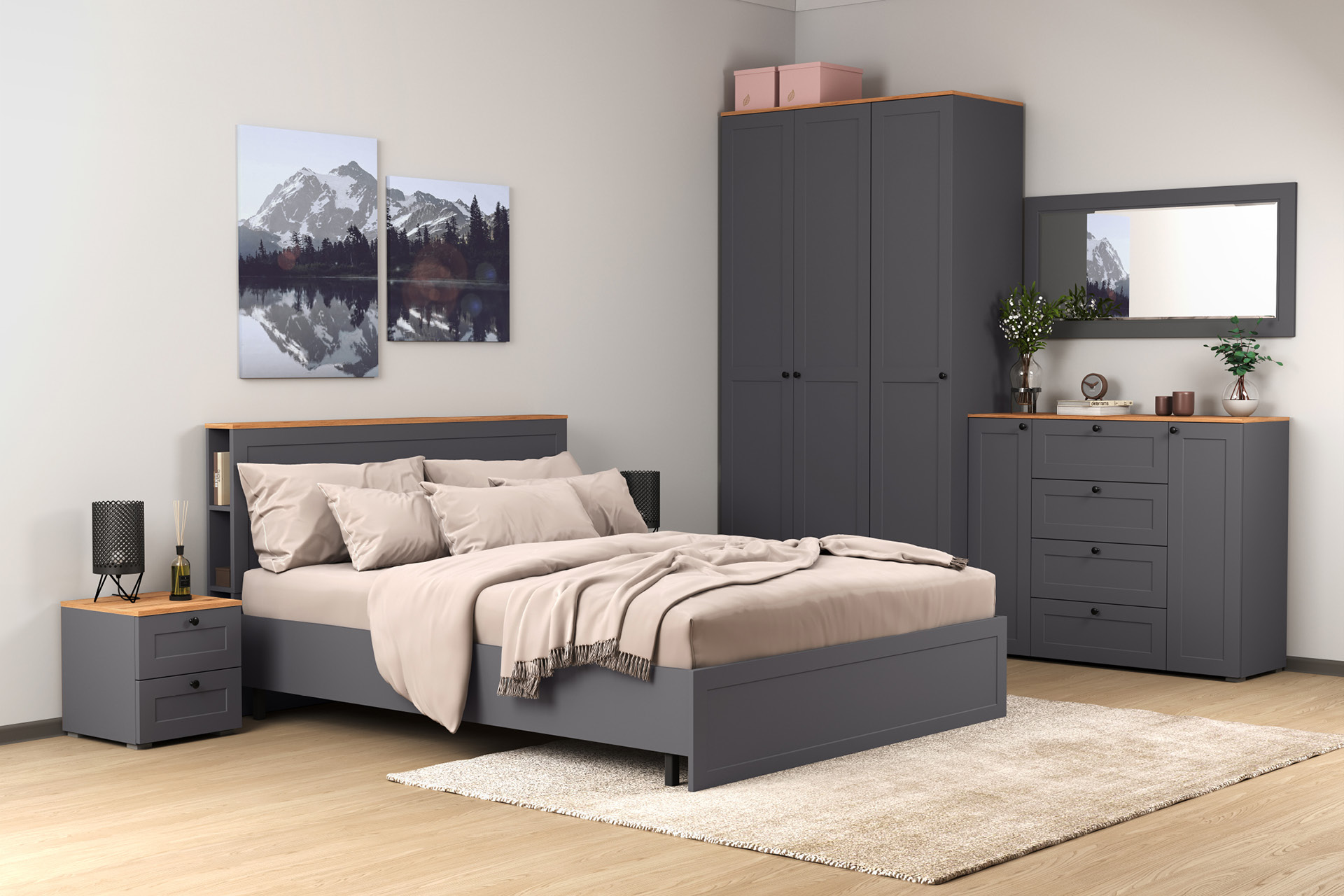 Кровать Остин 11.53 с ортопедическим основанием, серый графит 0162 РЕ, дуб золотой CRAFT, графит ZB 856-2 ПВХ (спальное место 160 х 200)