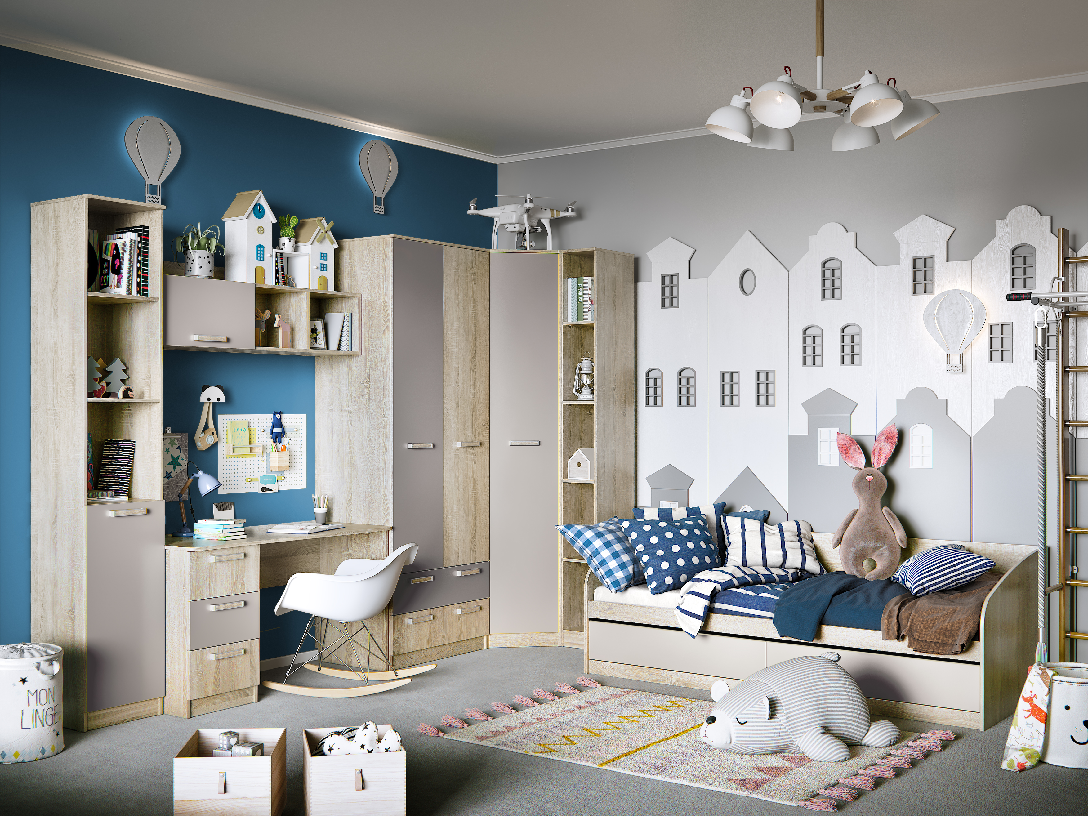 Кровать детская Акварель НМ 041.50 дуб сонома, капучино (спальное место 90х200)