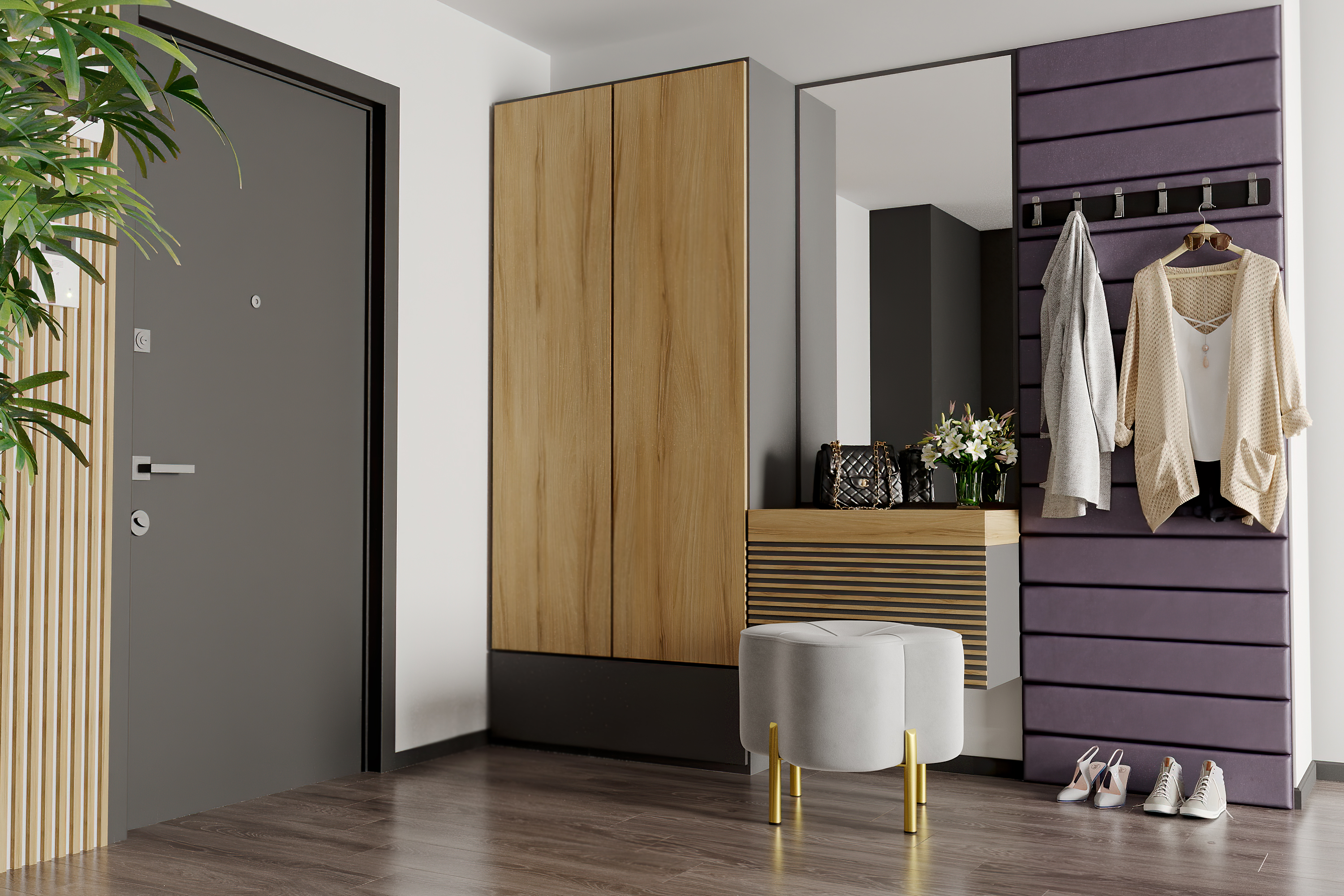 Интерьерные пуфы Берг созданы для того, чтобы использование прихожей проходило максимально комфортно. Такой предмет интерьера не только окажется украшением комнаты, но и позволит разместить на нем вещи, такие как зонтик, или присесть для надевания обуви.