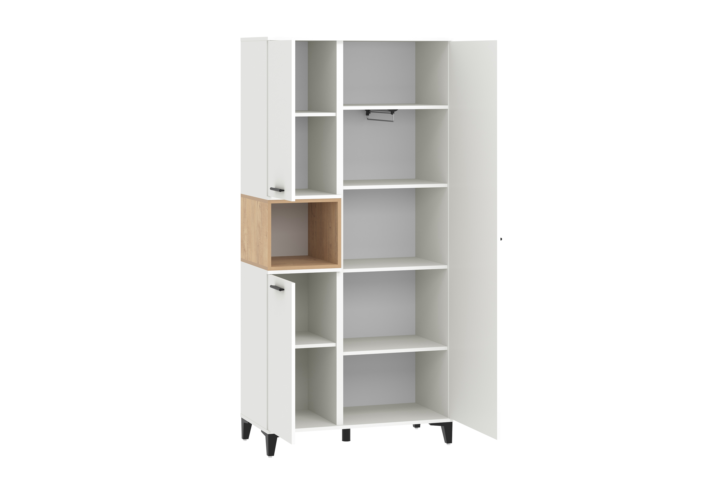 Уникальный шкаф «Bergen» с контрастными вставками, позволит Вам создать неповторимую композицию мебели для гостиной. Шкаф предназначен для хранения одежды. Представляет собой каркас с тремя дверьми и одной нишей. Функциональность шкафа заключается в возможности использования, как с полками, так и с кронштейн-вешалкой. В зависимости от необходимого назначения. Шкаф предназначен как для автономного использования, так и для завершения композиции с тумбами коллекции «Вergen». Традиционно, шкаф устанавливается рядом с тумбой под ТВ и выполняется с глухим фасадом и одной нишей для хранения: сувениров, книг и других предметов интерьера. Для максимально комфортного использования, вставка может быть собрана на левую или правую сторону. Высокие опоры придают внешнюю легкость и удобны для влажной уборки. Шкафы серии BERGEN выпускаются в 2-х цветах: Белый и Ясень анкор темный. Купить шкаф можно удобным способом: оформить заказ в интернет- магазине, положив товар в корзину.
