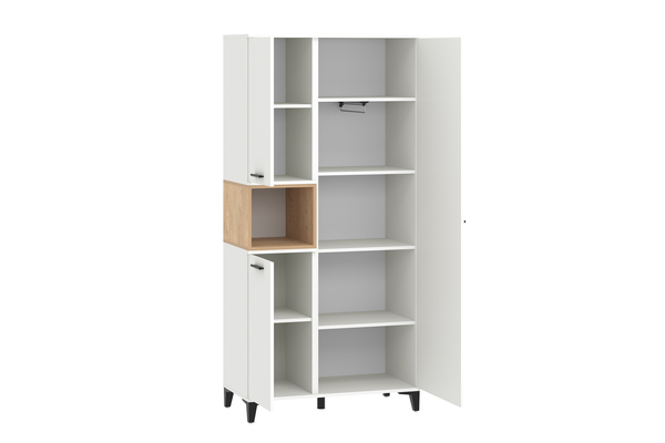 Шкаф-пенал в гостиную Ливерпуль белый, ясень ваниль ПВХ