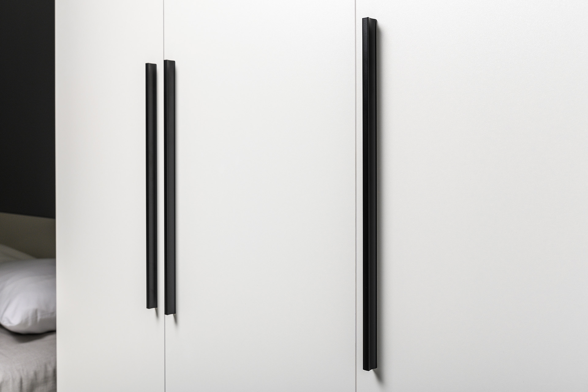 Два варианта кровати: ширина спального места 1200 и 1600 мм. Вместительный трёхстворчатый шкаф полноценной глубины с выдвижными ящиками и съемными полками. Ящики оснащены направляющими полного выдвижения.