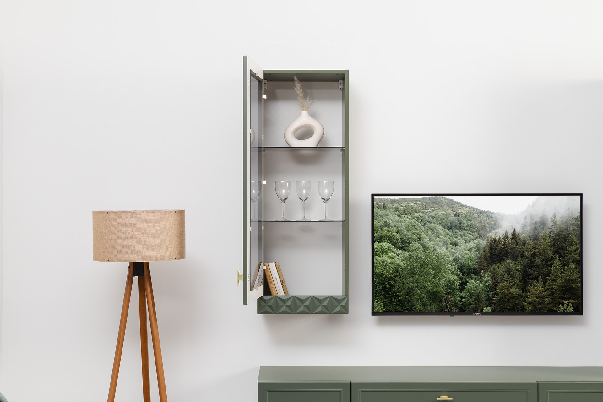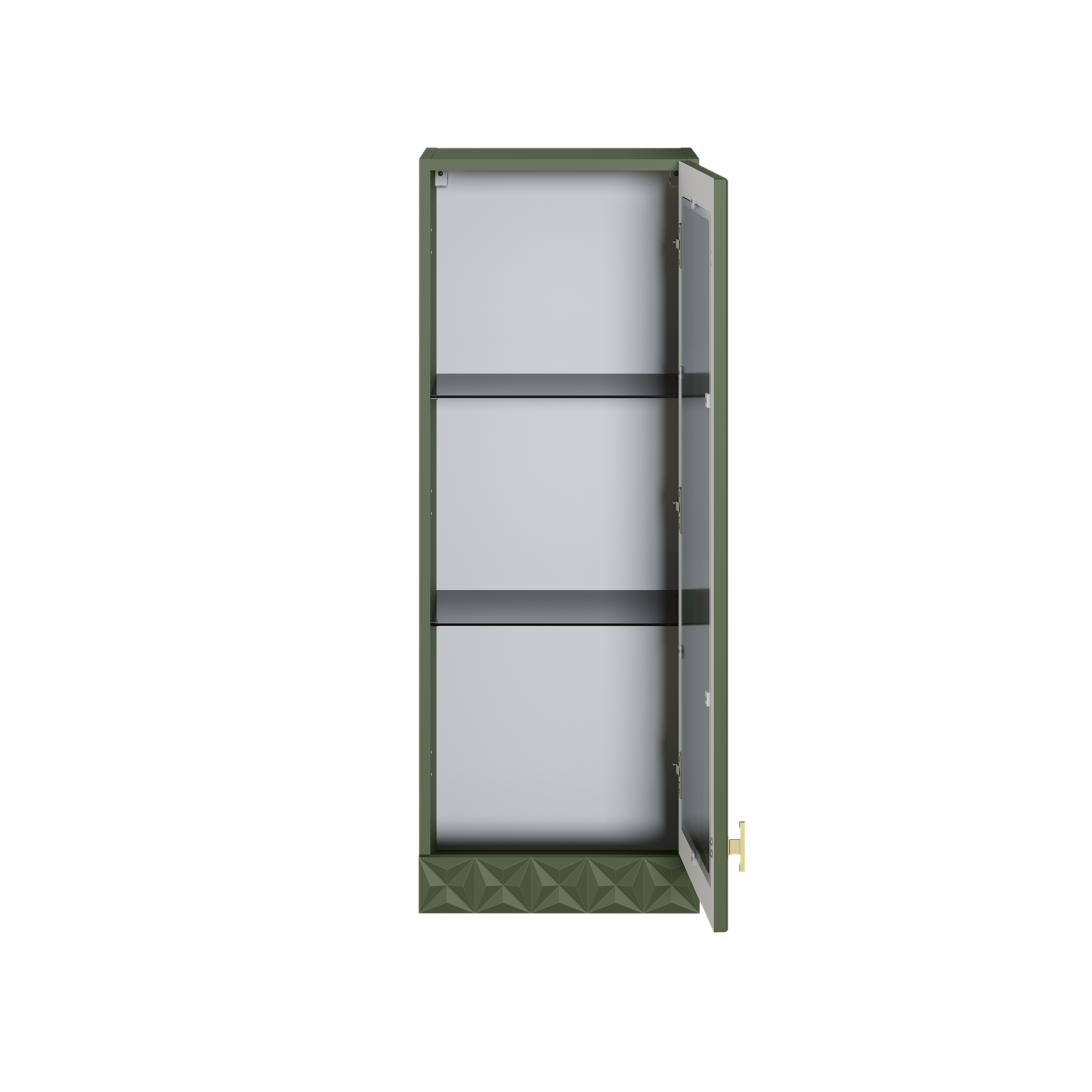 Шкаф навесной Марион 16.334 дымчатый зеленый K521, олива шагрень AG 1050 ПВХ (собирается на любую сторону)
