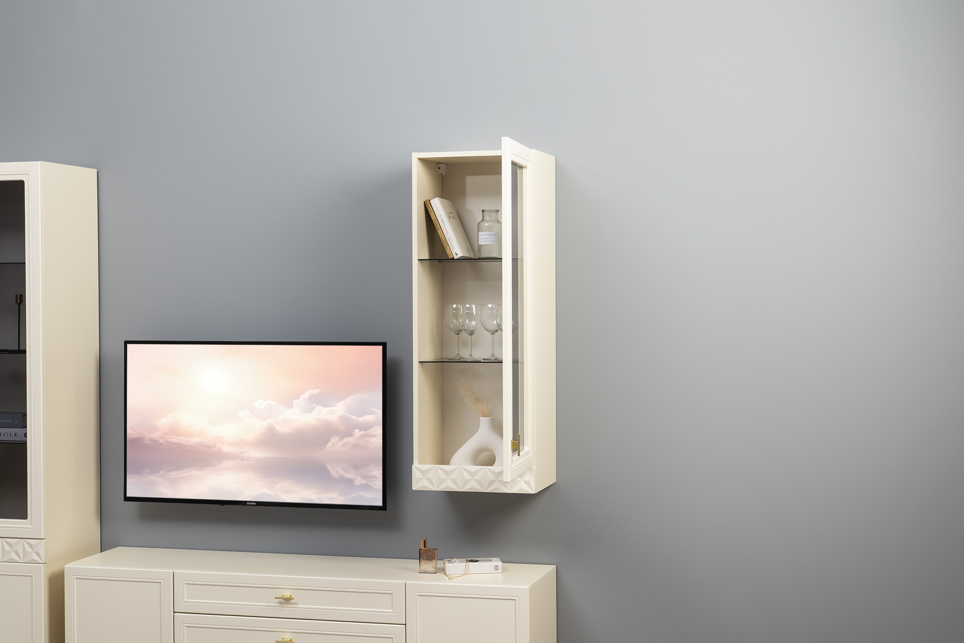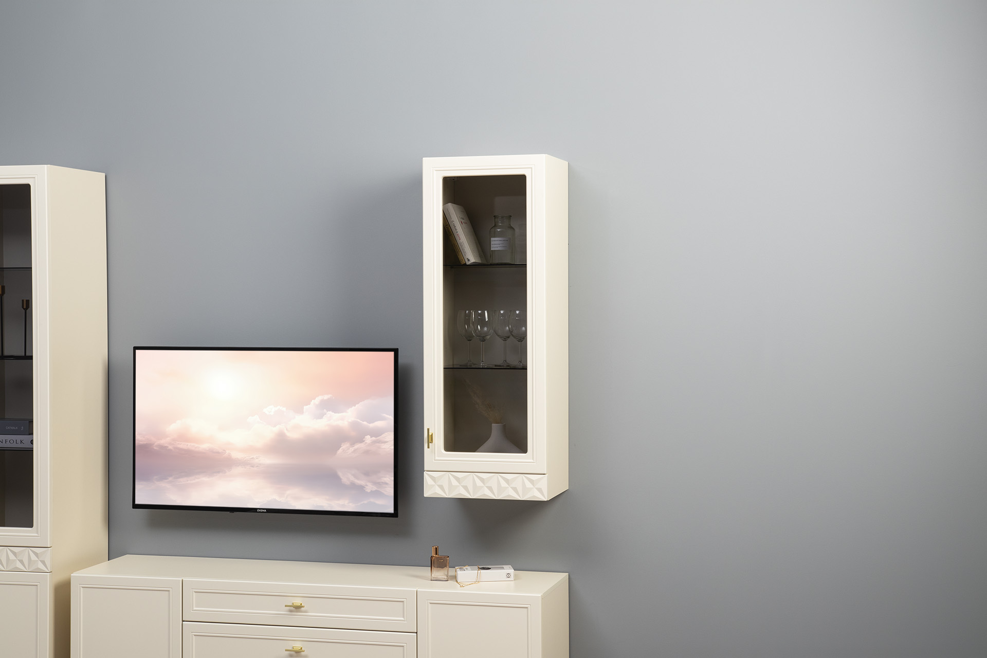 Шкаф навесной в гостиную Бэль 10.63 белый премиум, дуб золотой CRAFT