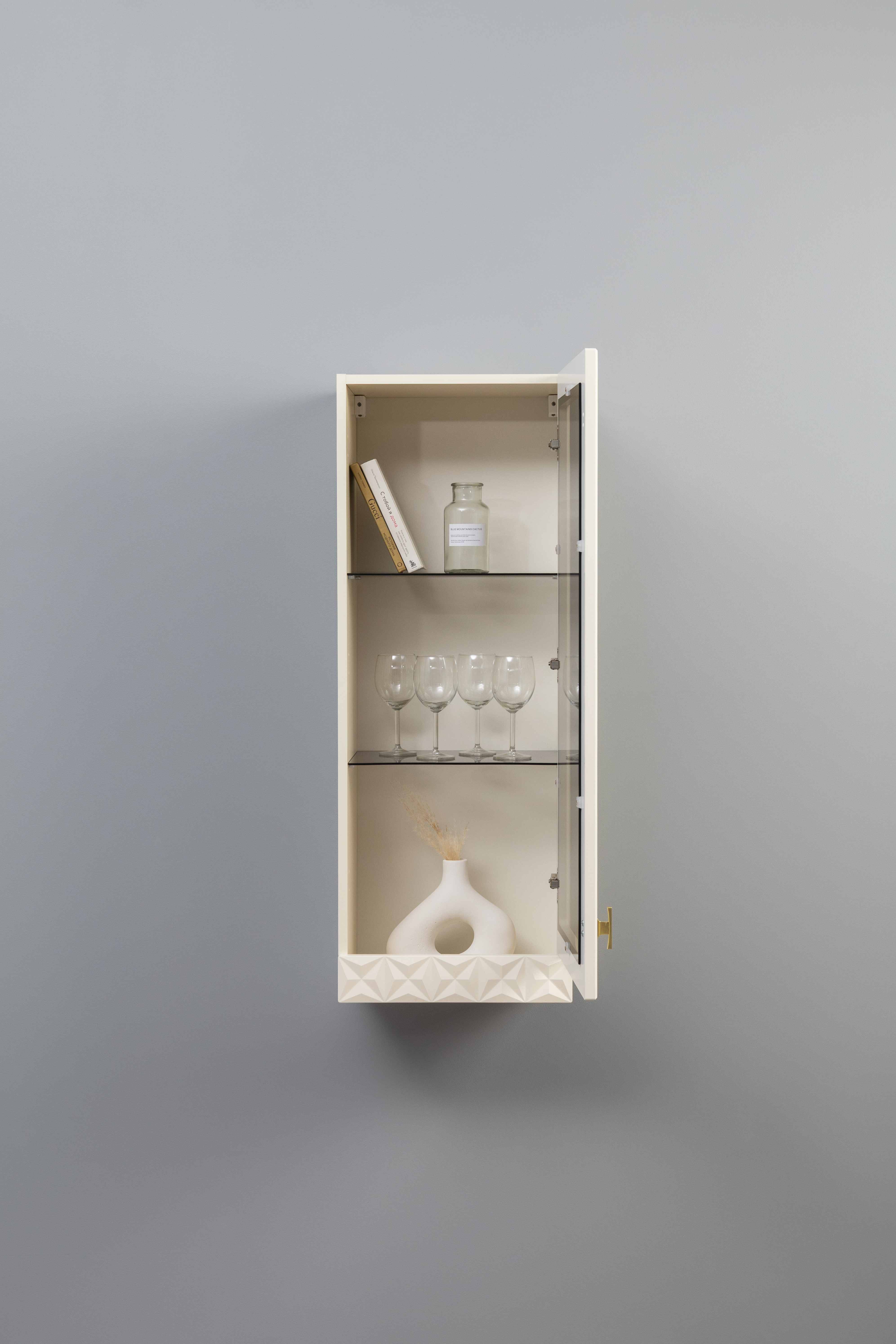 Шкаф навесной Марион 16.334 слоновая кость С341 PE, слоновая кость 6898 ПВХ (собирается на любую сторону)