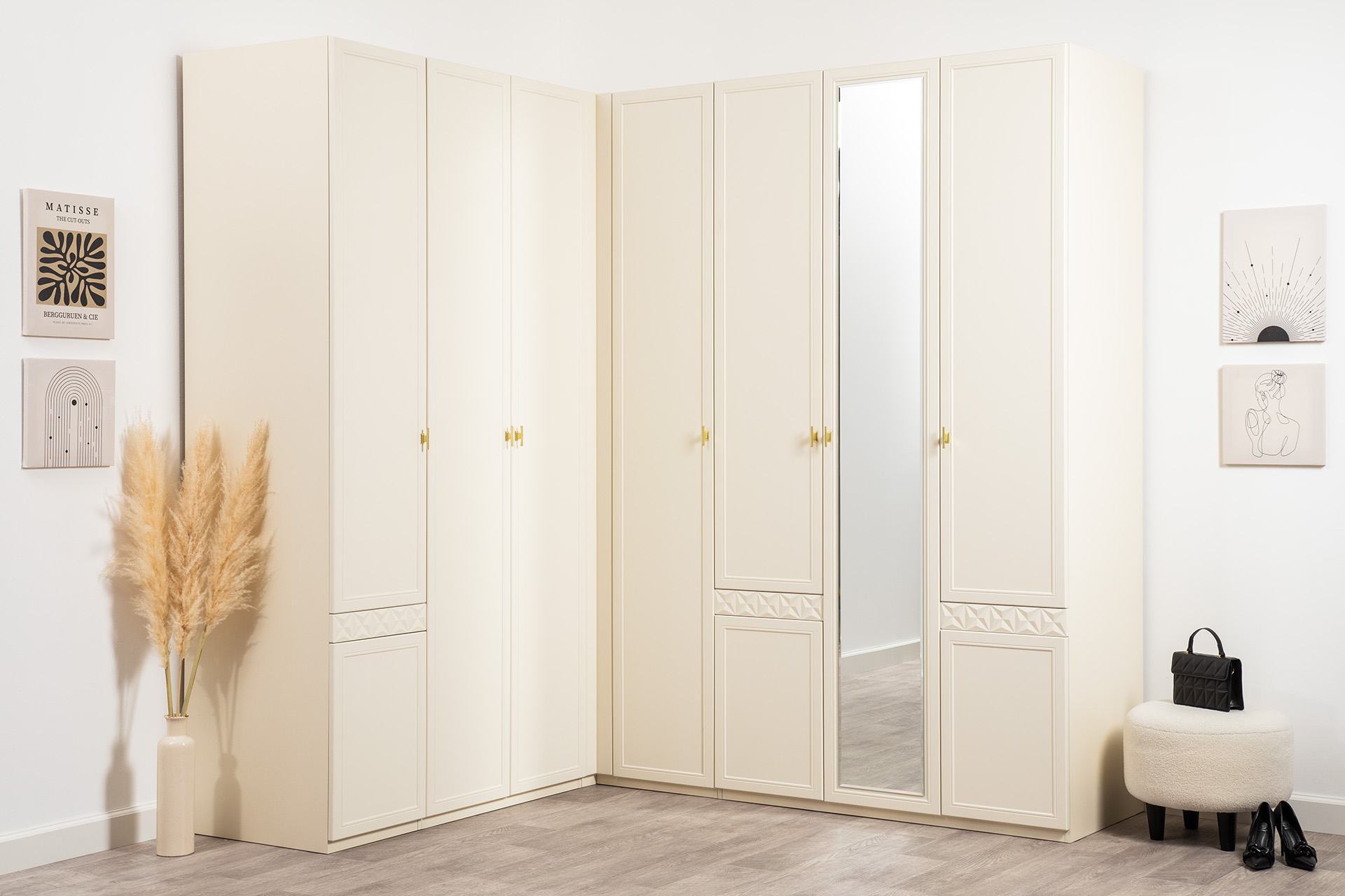 Шкаф угловой Марион 16.339 слоновая кость С341 PE, слоновая кость 6898 ПВХ (собирается на любую сторону)