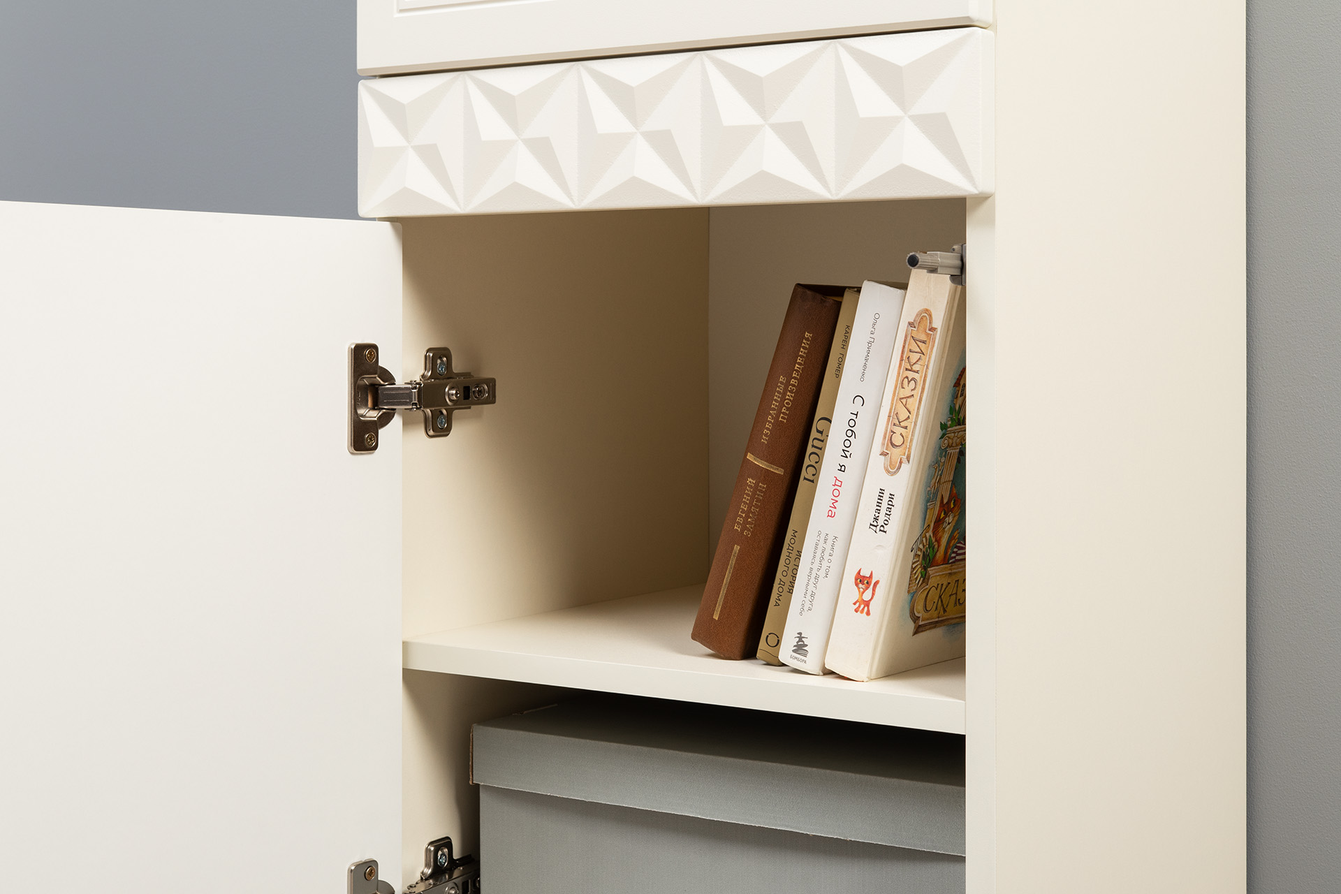 Шкаф-витрина Марион 16.397.01 слоновая кость С341 PE, слоновая кость 6898 ПВХ (собирается на любую сторону)