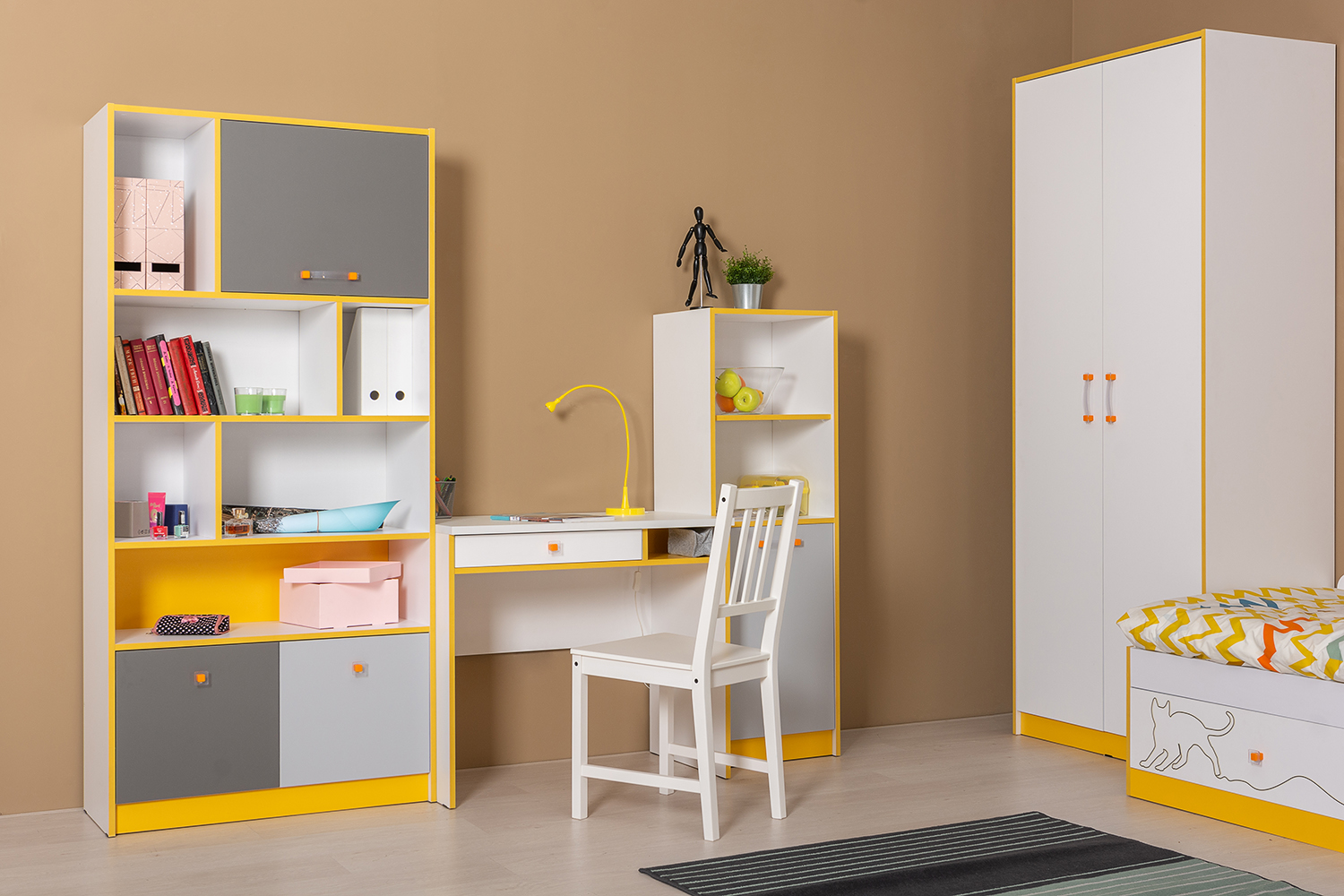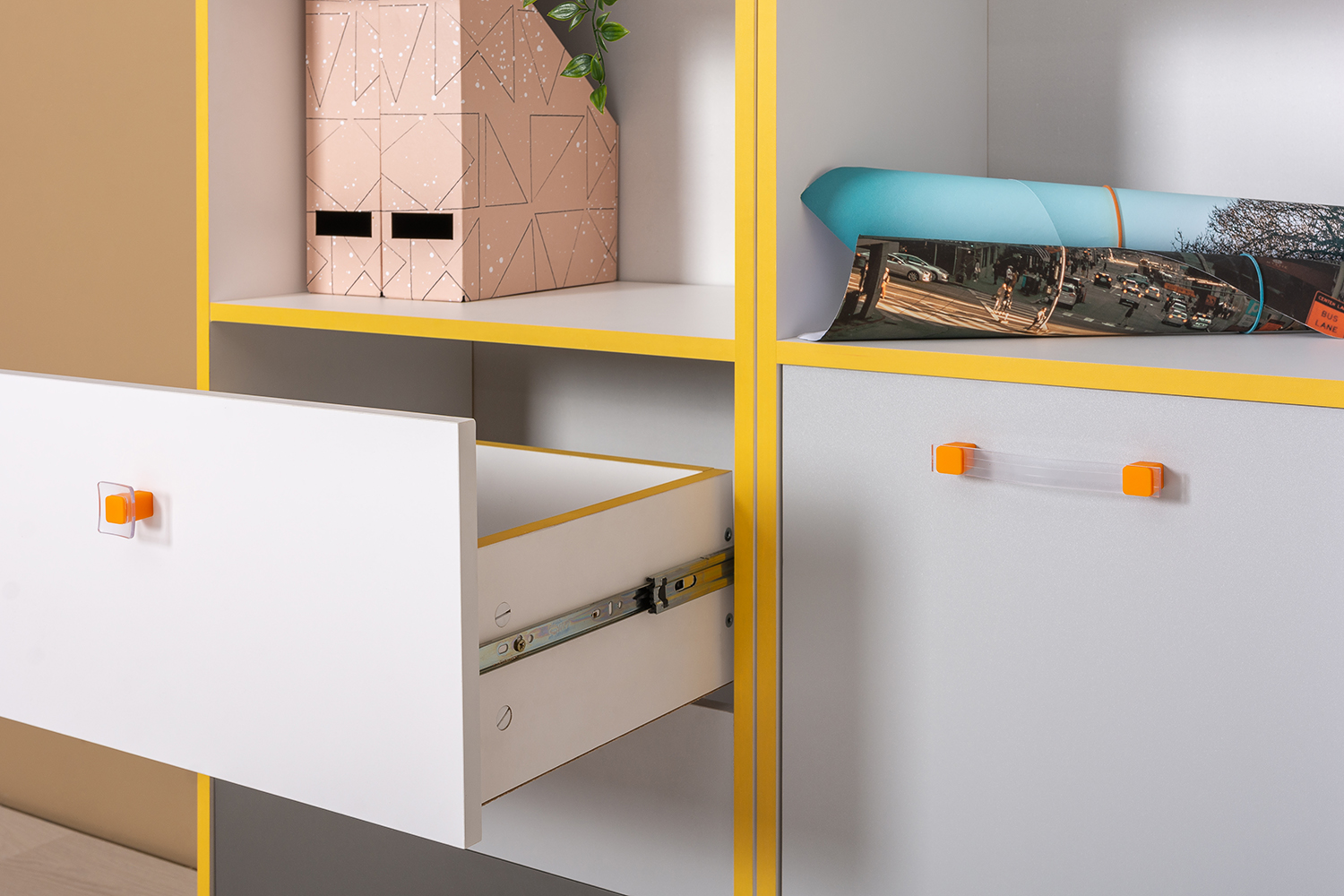 Стеллаж Альфа 09.135 солнечный свет, белый премиум, стальной серый