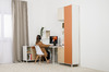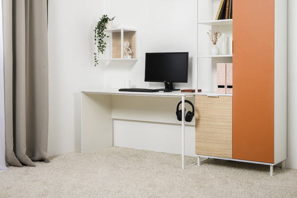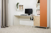 Все вещи ребёнка будут на своём месте. На столе есть крепление для рюкзака или наушников. Наполнение шкафов для одежды можно менять на выбор: полки либо штанги. Петли фасадов оснащены доводчиками.