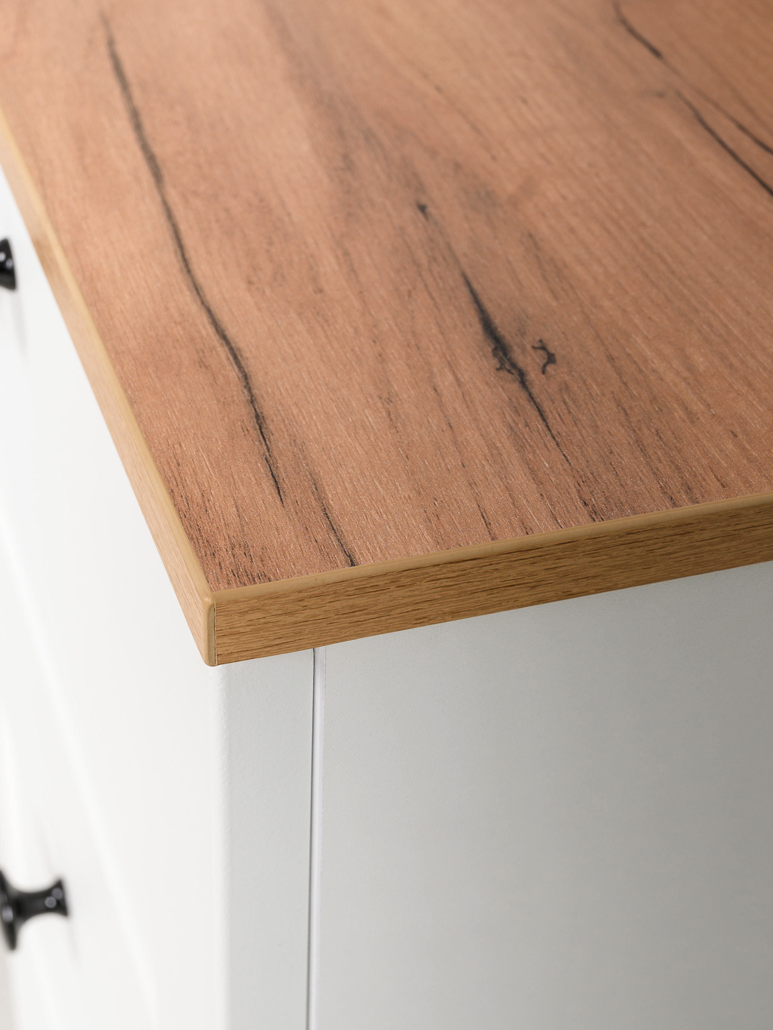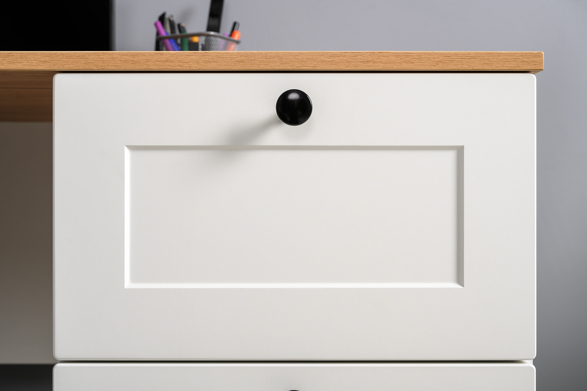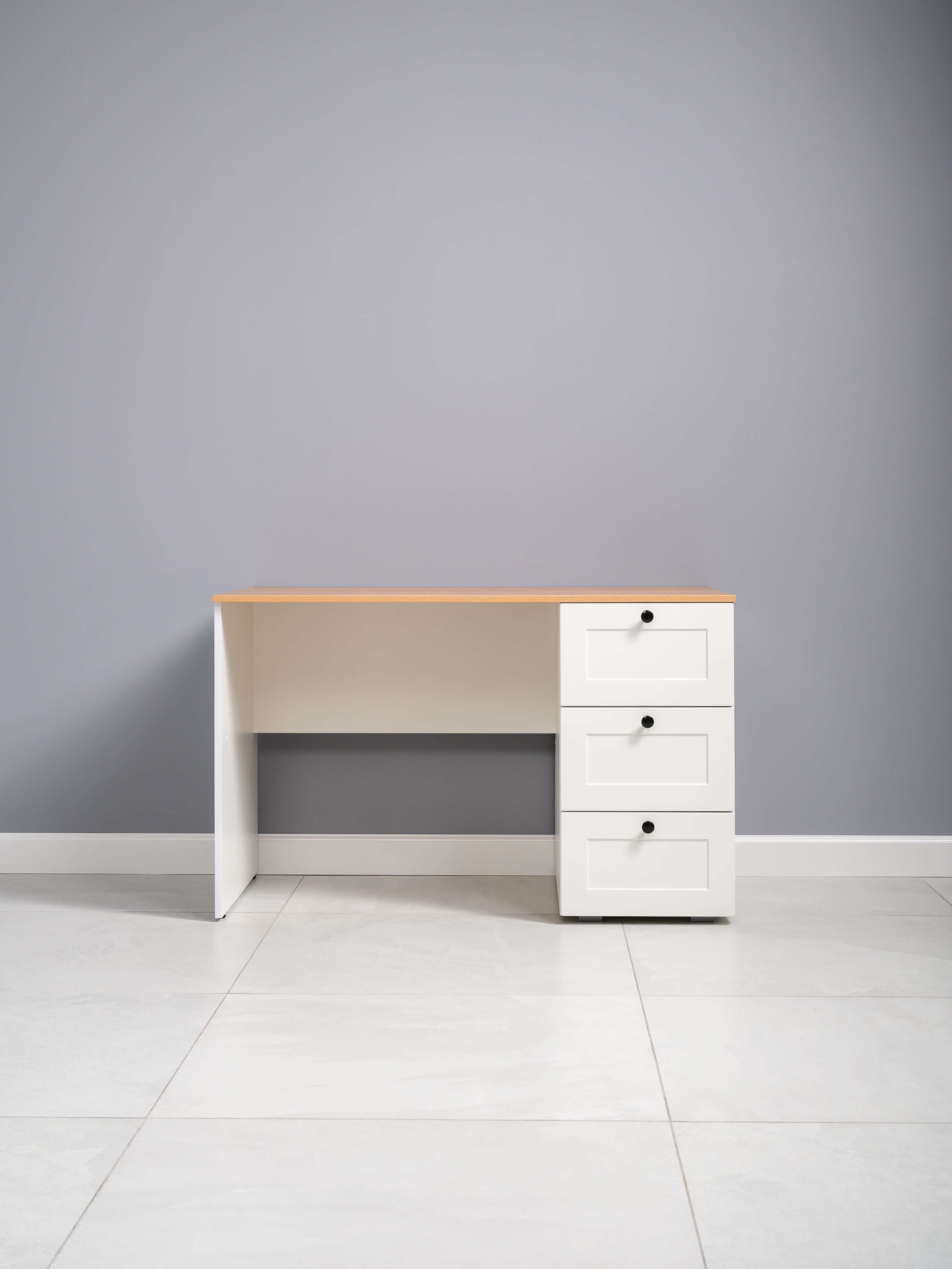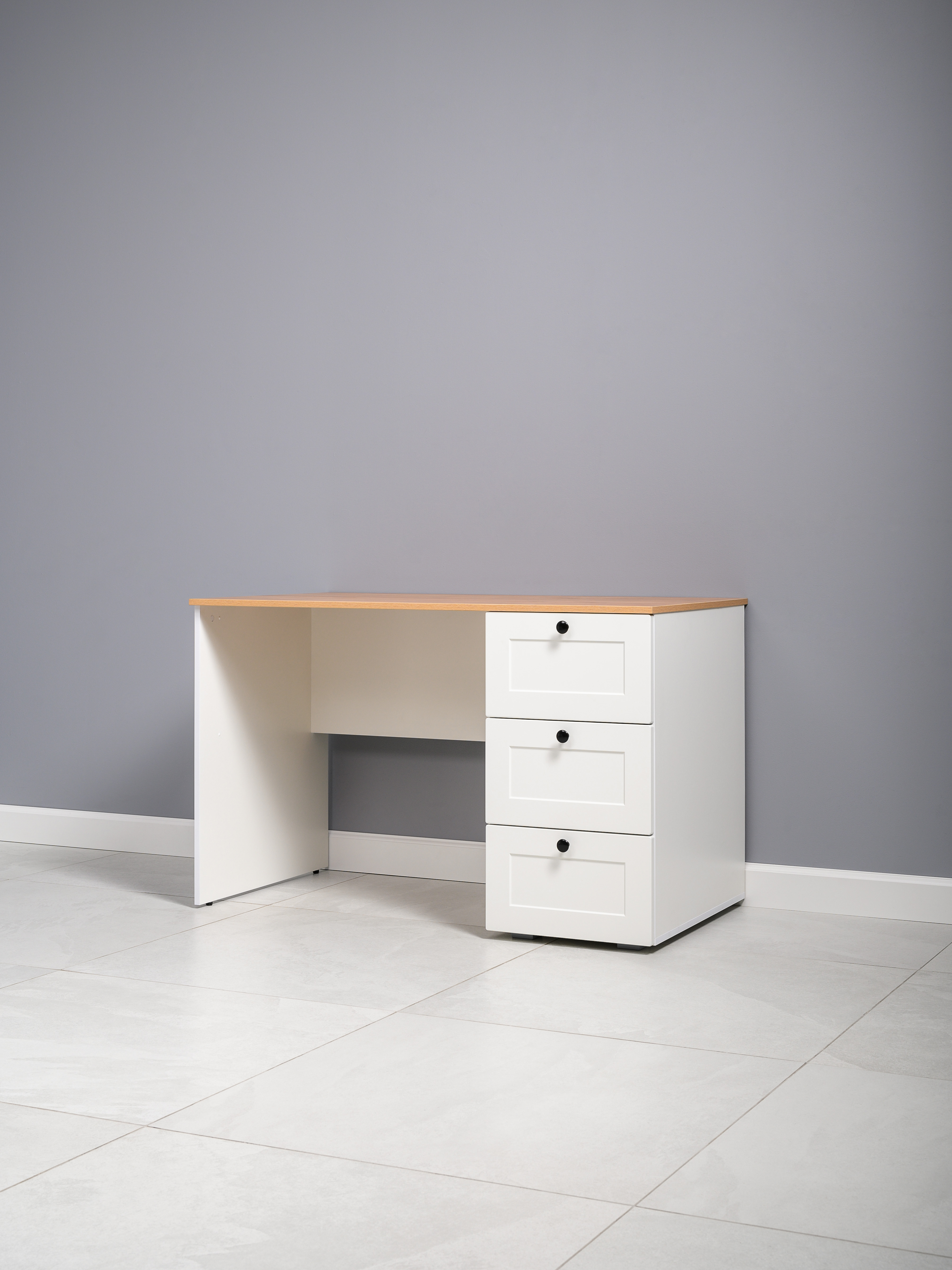 Стол письменный Остин 12.159 белый PE шагрень, дуб золотой CRAFT, белая шагрень 4101 ПВХ, сборка на любую сторону