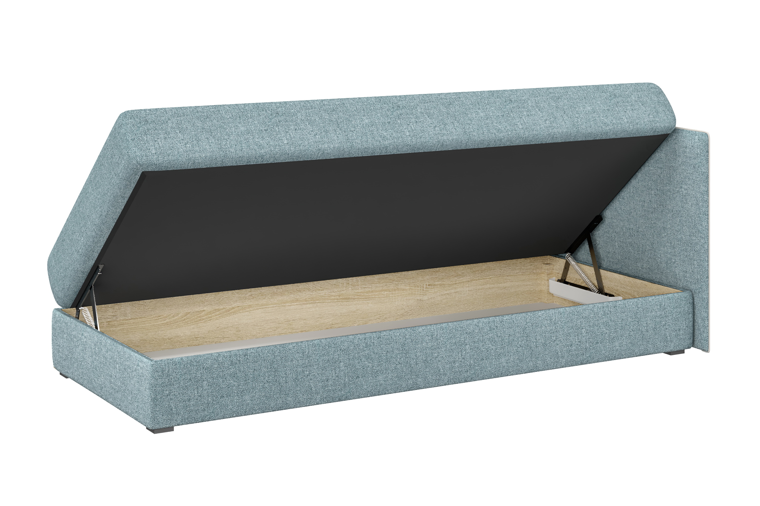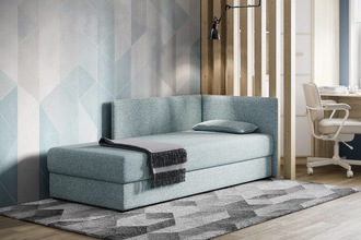 Тахта MIA левая рогожка Sherlock 975 серо-голубой, кожзам Madrit 982 коричневый