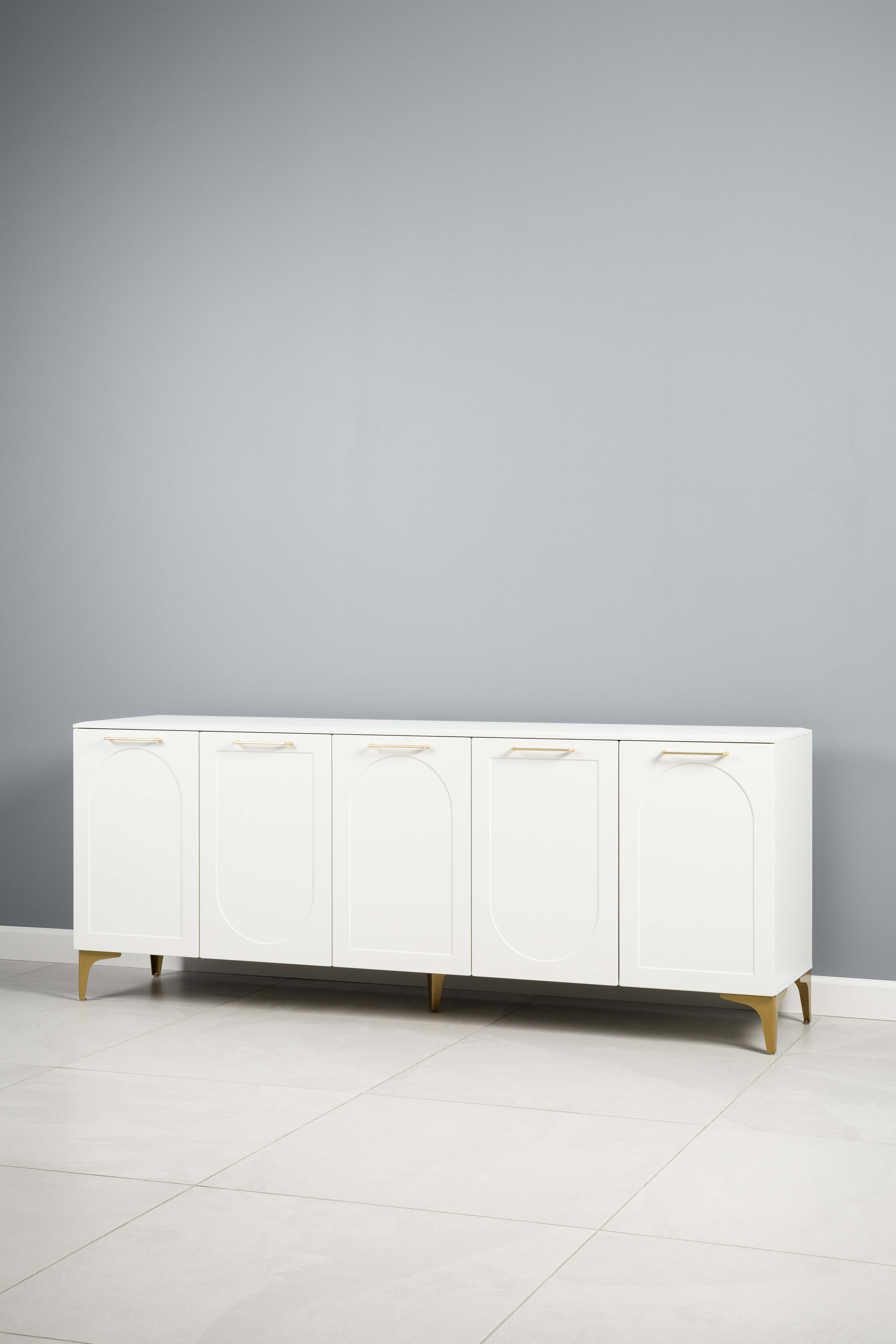 Тумба под ТВ в гостиную Спейс 13.64 белый премиум, белый глянец ПВХ