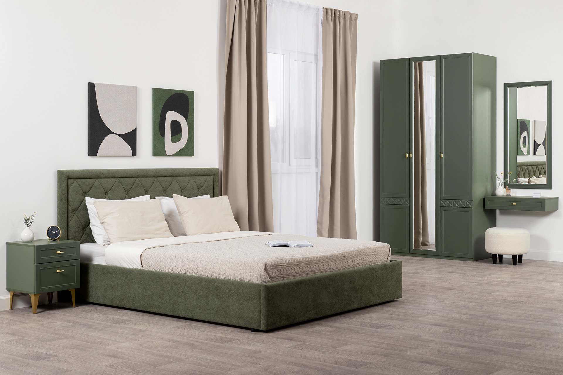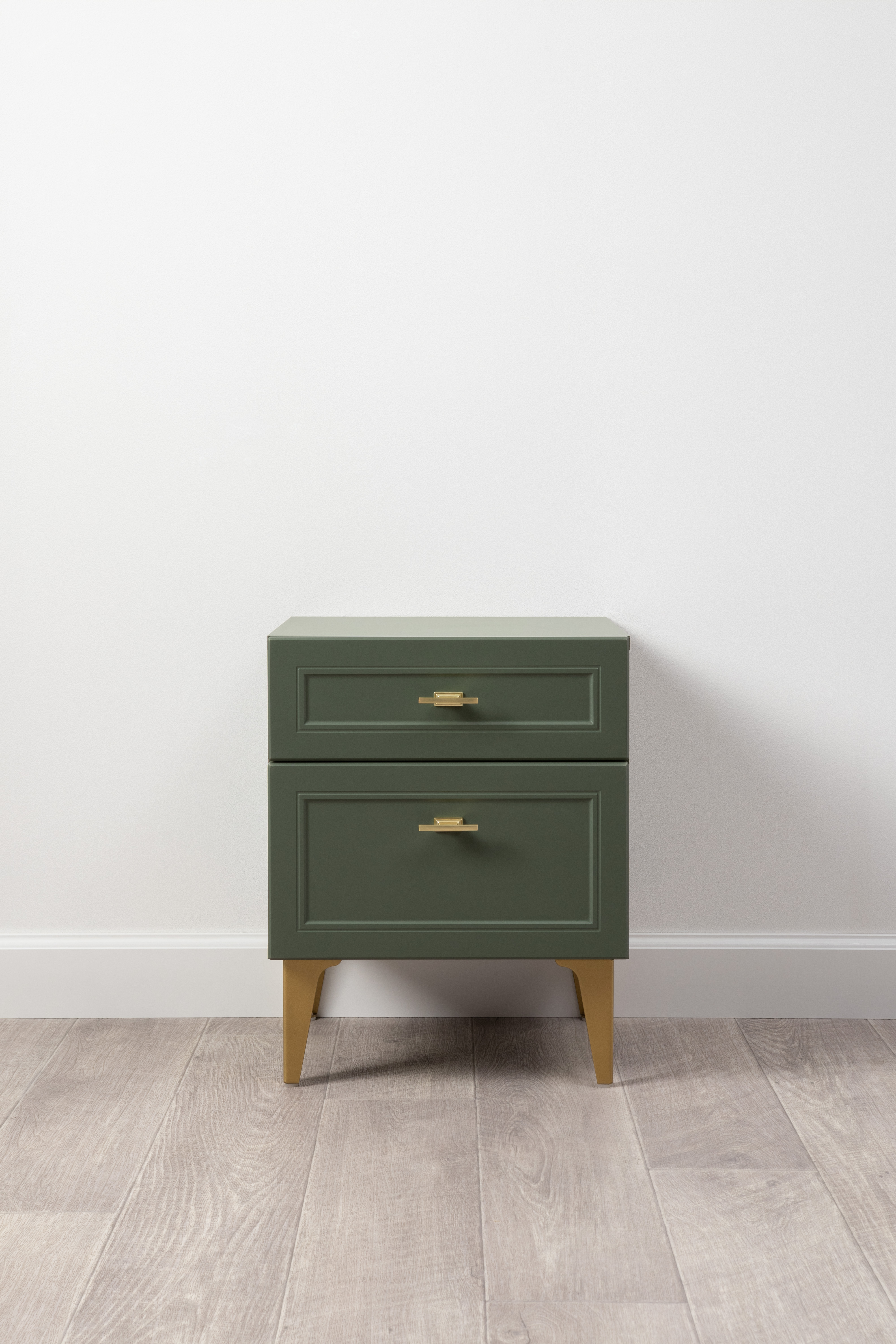 Тумба прикроватная Марион 16.14 дымчатый зеленый K521, олива шагрень AG 1050 ПВХ, белый PE шагрень