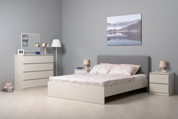 Кровать имеет мягкое изголовье и оснащается ортопедическим основанием.