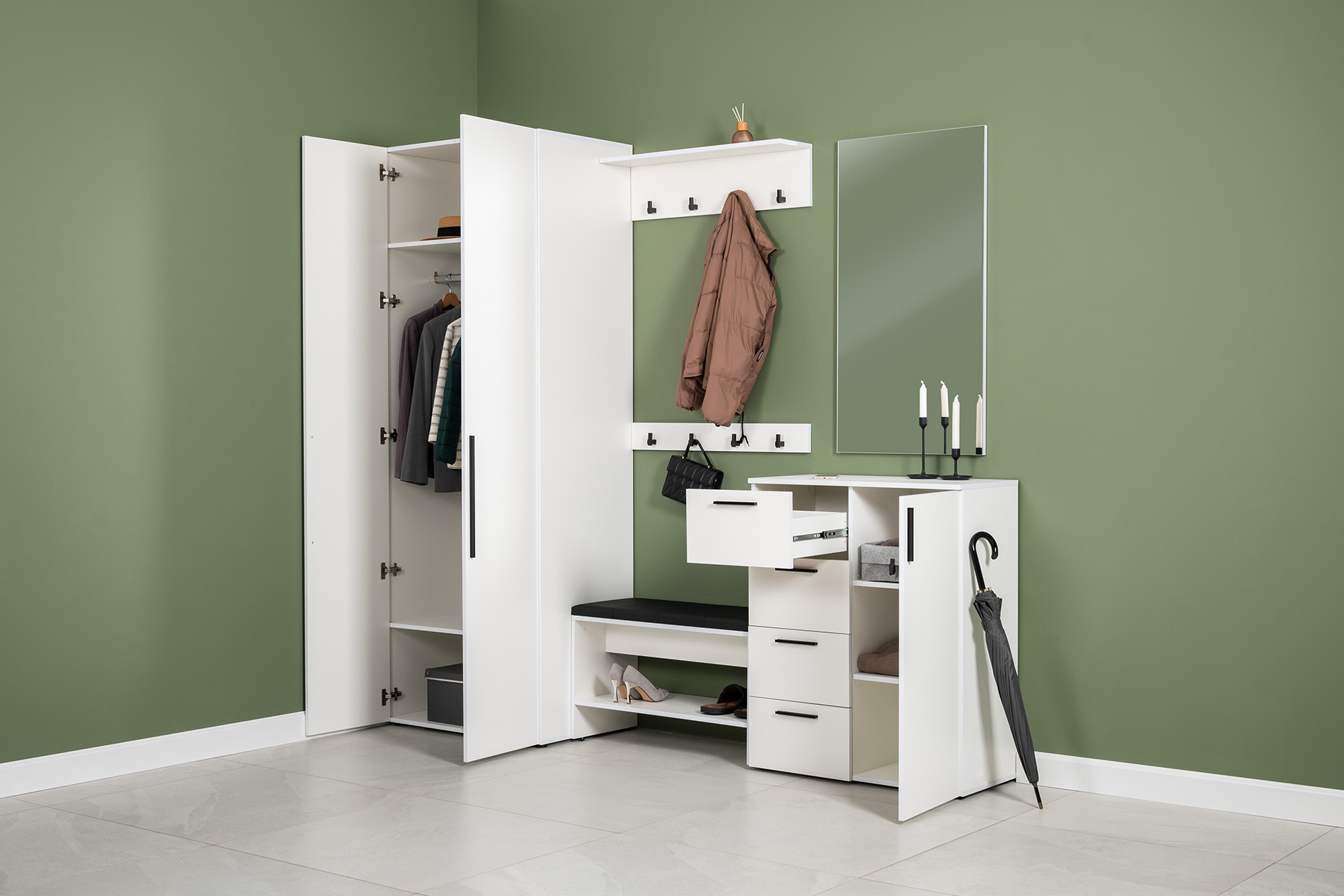 Тумба для обуви Эйр 16.130 белый PE шагрень, кожзам HOLST black